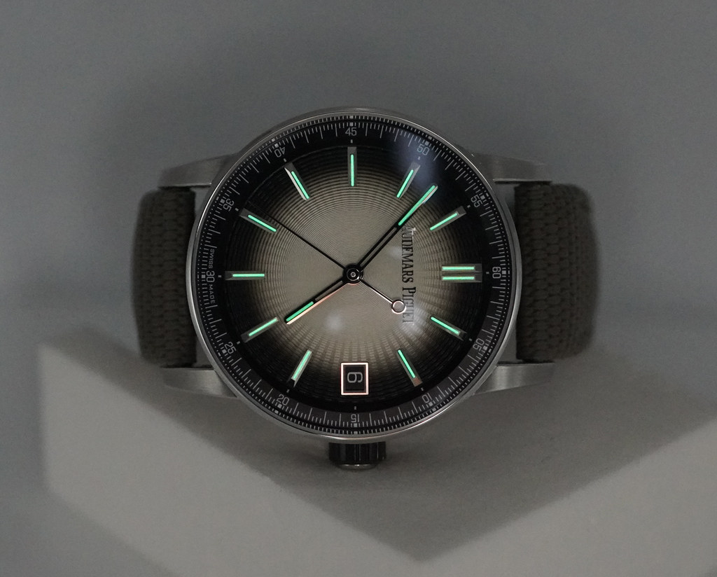A Mint, Unpolished Condition & Very Beautiful 2025 41mm Audemars Piguet 15210QT Code 11.59 Automatic with Stainless Steel & Ceramic Middle Case. Smoked Beige Dial & Double Glareproofed Sapphire Crystal. Its on Beige rubber-coated strap with steel pin buckle. Purchased from Audemars Piguet Boutique in 2025.