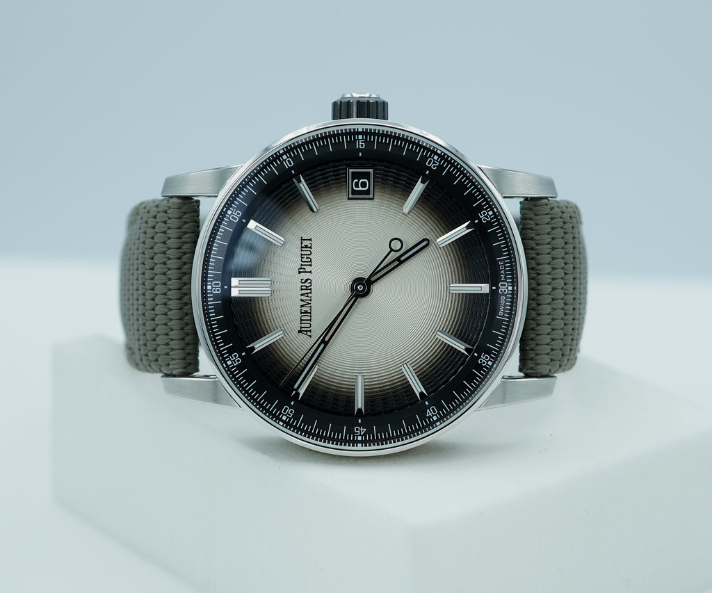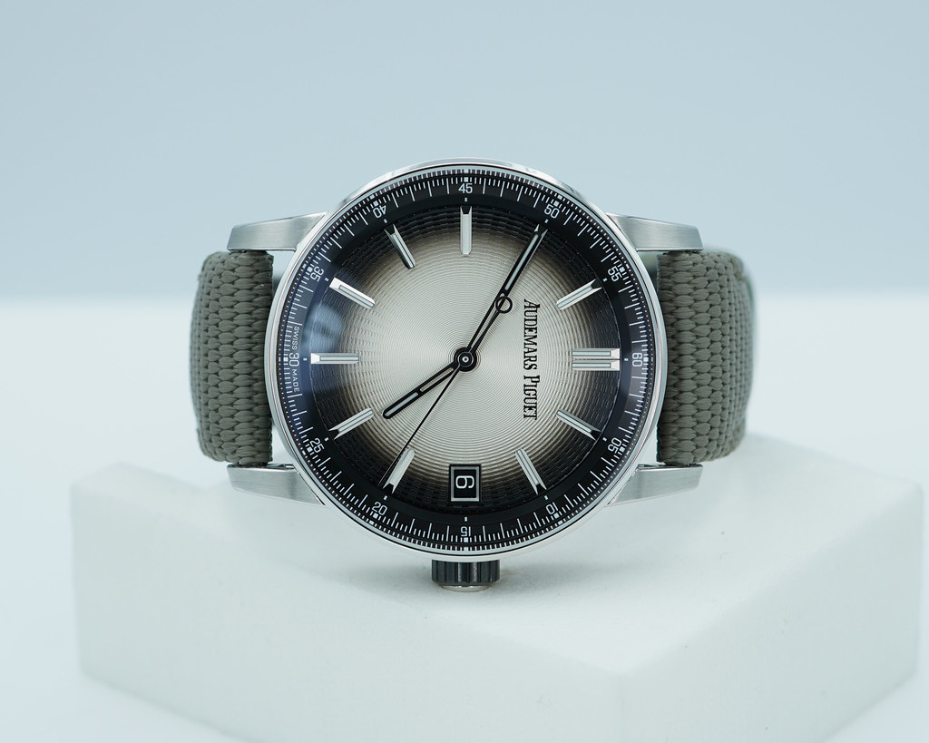 A Mint, Unpolished Condition & Very Beautiful 2025 41mm Audemars Piguet 15210QT Code 11.59 Automatic with Stainless Steel & Ceramic Middle Case. Smoked Beige Dial & Double Glareproofed Sapphire Crystal. Its on Beige rubber-coated strap with steel pin buckle. Purchased from Audemars Piguet Boutique in 2025. Watch running perfect with Non Issues. Full Set & Under 5 Years Factory Warranty.