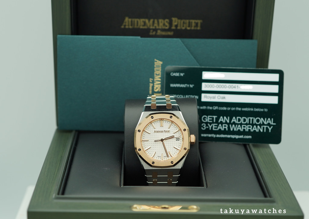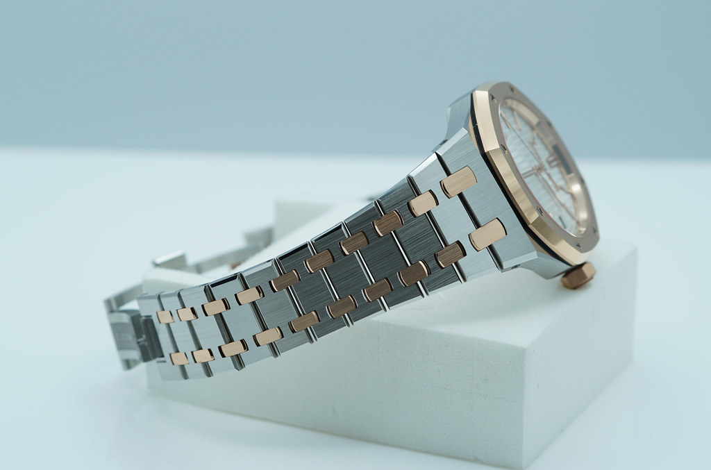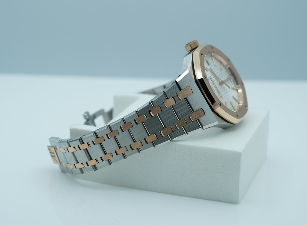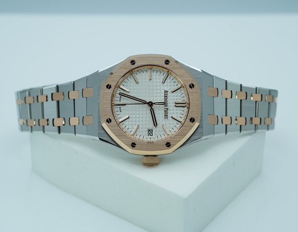 A Mint Unpolished Condition & Very Beautiful 2024 37mm Audemars Piguet 15550 Royal Oak SelfWinding 18K Rose Gold & Stainless Steel with White Silvery Dial. Purchased from Audemars Piguet Boutique in 05.2024.