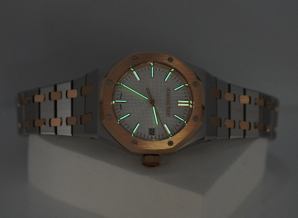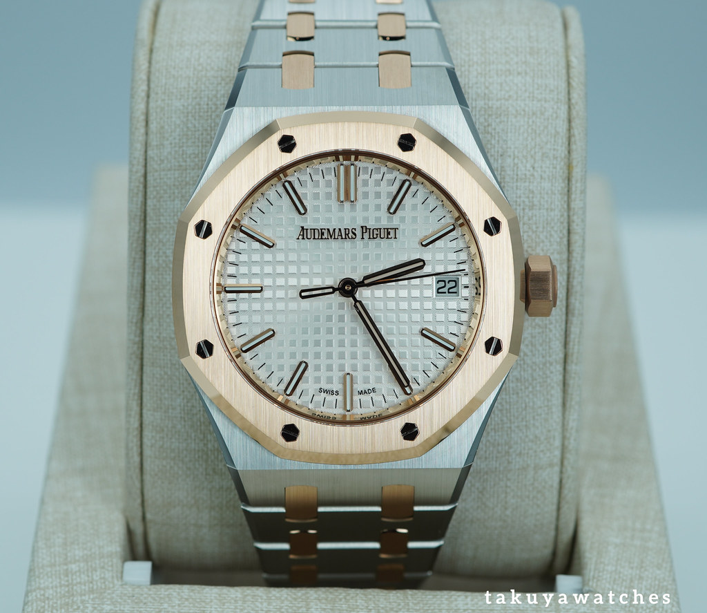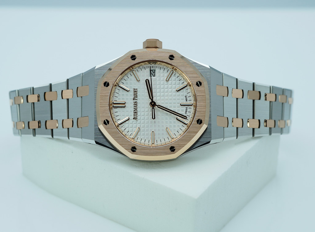 A Mint Unpolished Condition & Very Beautiful 2024 37mm Audemars Piguet 15550 Royal Oak SelfWinding 18K Rose Gold & Stainless Steel with White Silvery Dial. Purchased from Audemars Piguet Boutique in 05.2024. Watch running perfect with Non Issues. Full Links. Full Set & Under 5 Years Factory Warranty.
