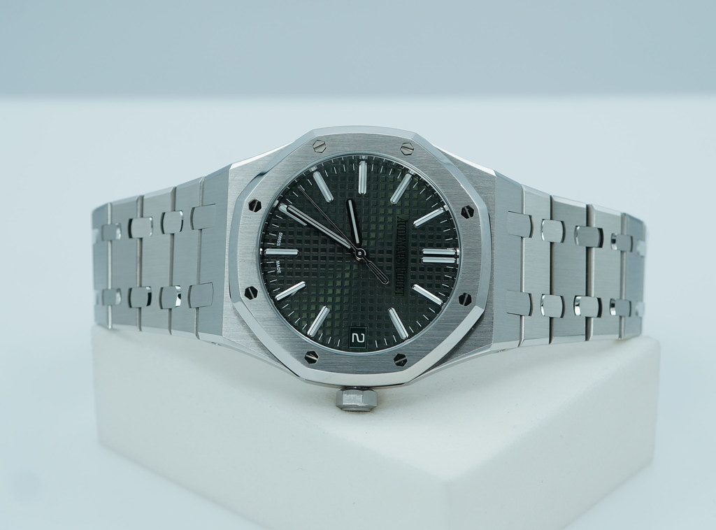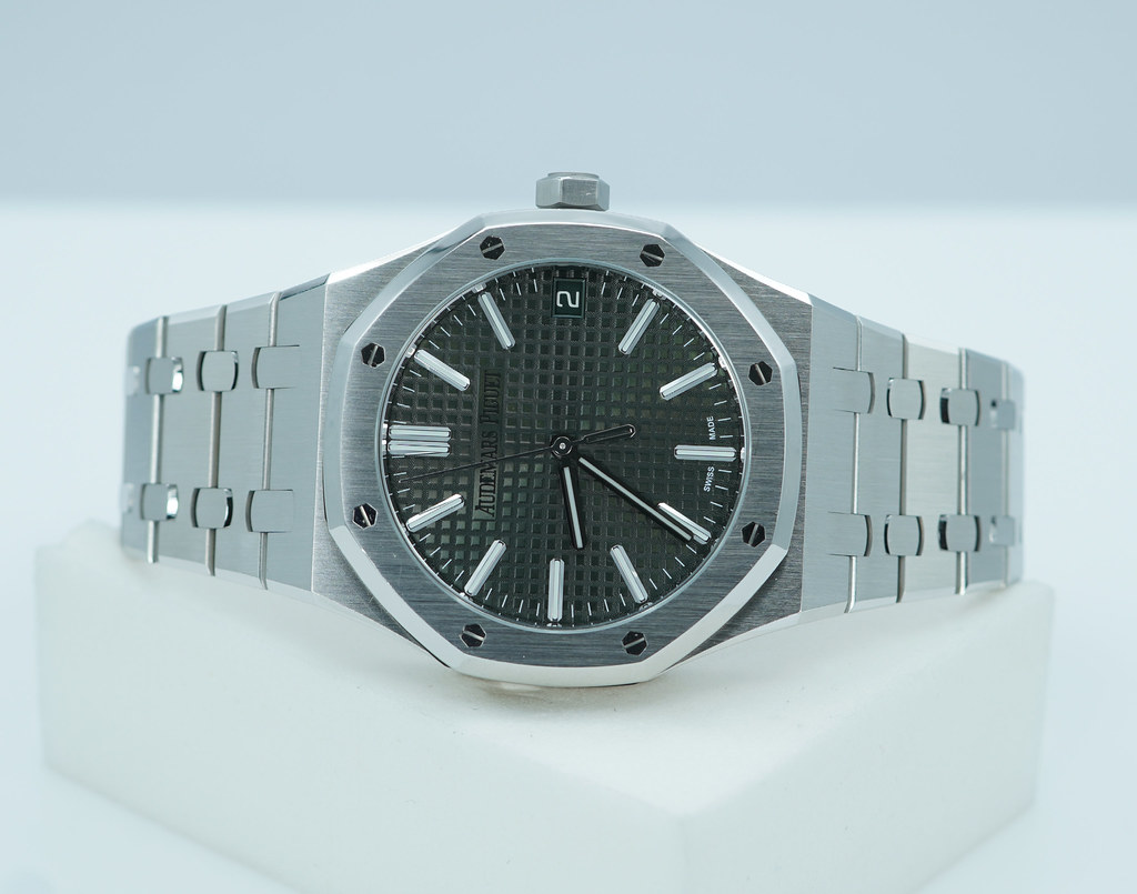 An Excellent Condition & Very Beautiful, Discontinued Only One Year Production 2022 41mm Audemars Piguet Royal Oak “50th Anniversary” 15510 Self Winding Stainless Steel with Khaki Green Dial. Purchased from Audemars Piguet Boutique in 08.2022. Watch running perfect with Non issues. Full Links. Full Set & Under 5 Years Factory Warranty.