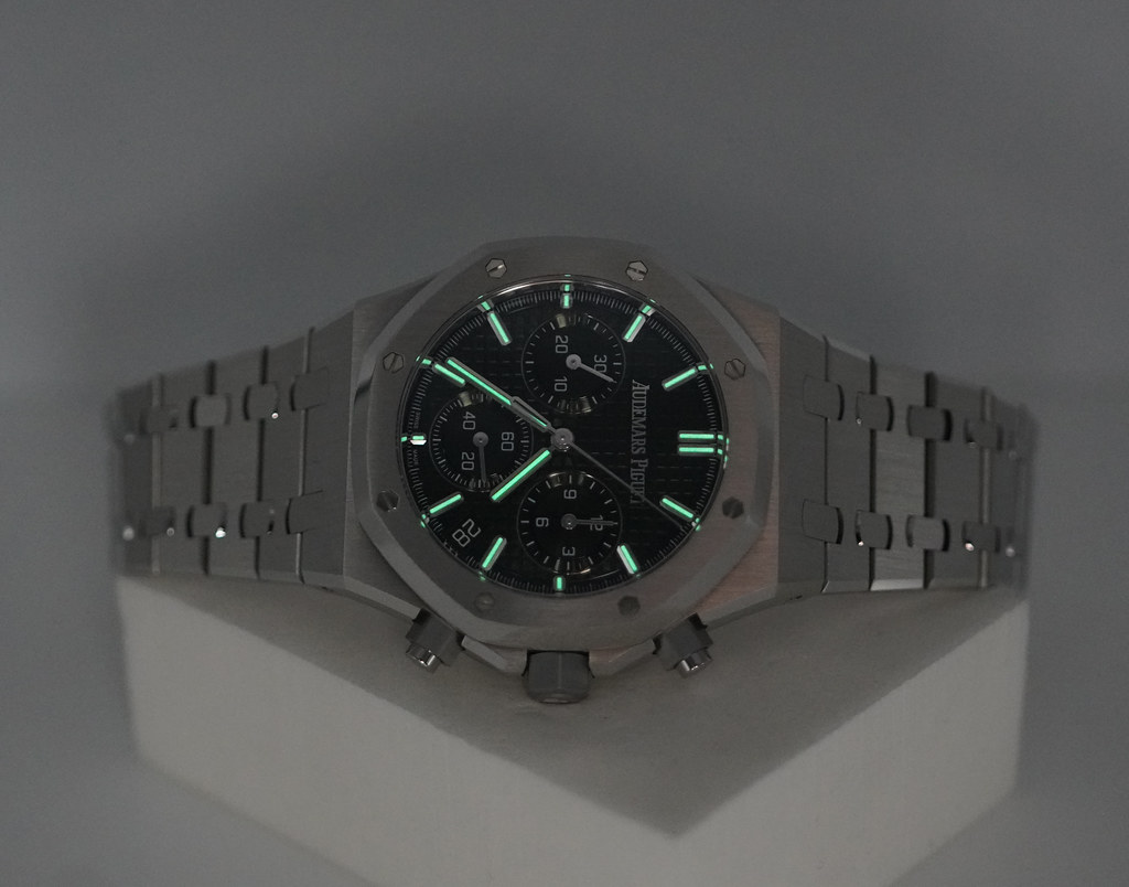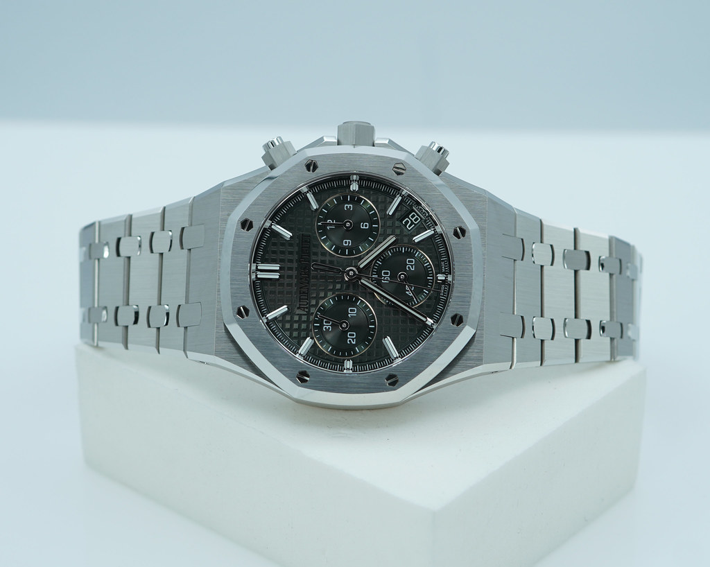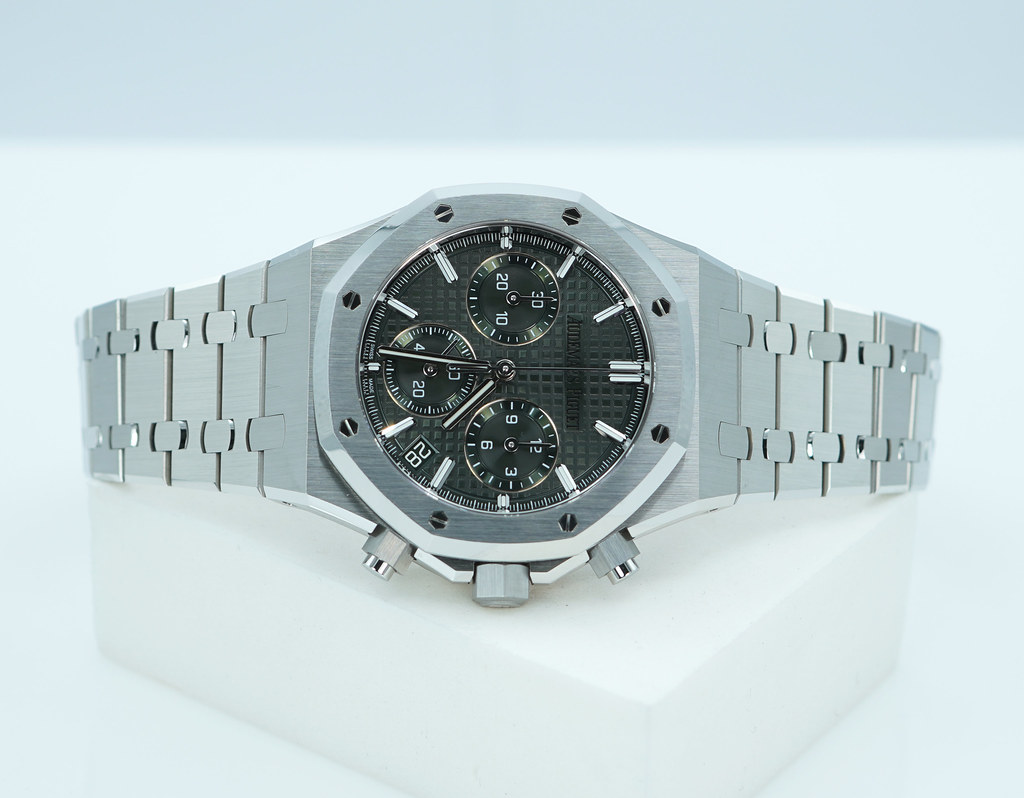 An Excellent, Unpolished Condition & Very Beautiful 2024 41mm Audemars Piguet Royal Oak Chronograph Stainless Steel with Khaki Green Dial. Purchased from Audemars Piguet Boutique in 04.2024. Watch running perfect with Non Issues. Full Links. Full Set & Under 5 Years Factory Warranty.