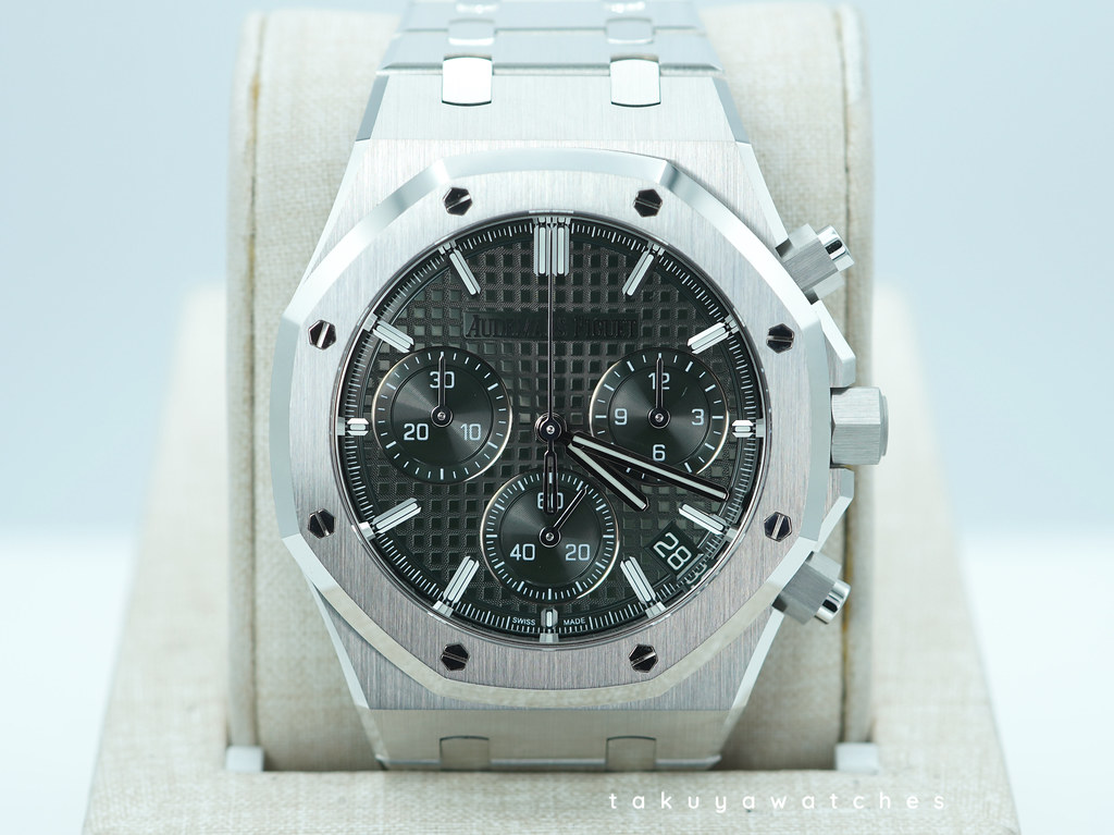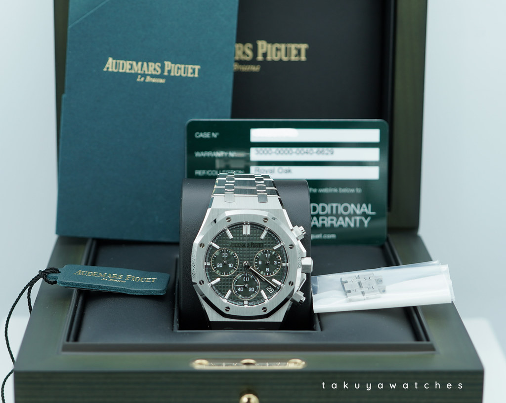 An Excellent, Unpolished Condition & Very Beautiful 2024 41mm Audemars Piguet Royal Oak Chronograph Stainless Steel with Khaki Green Dial. Purchased from Audemars Piguet Boutique in 04.2024.