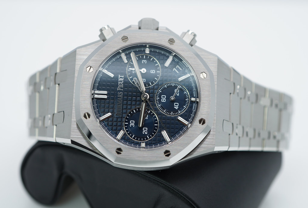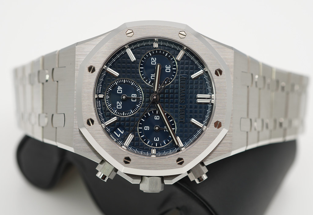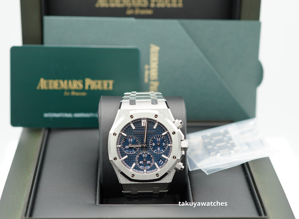 A Brand New in Box & Very Beautiful 2023 41mm Audemars Piguet Royal Oak Chronograph Stainless Steel with Beautiful Bleu Nuit, Nuage 50 Dial . Purchased from Audemars Piguet Boutique in 07.2023.
