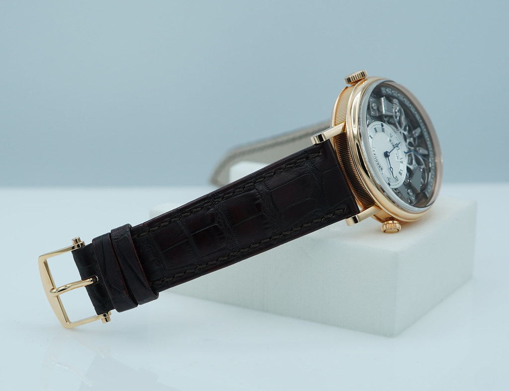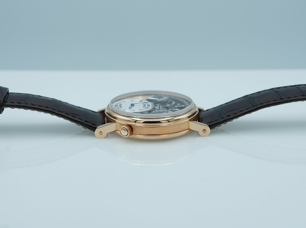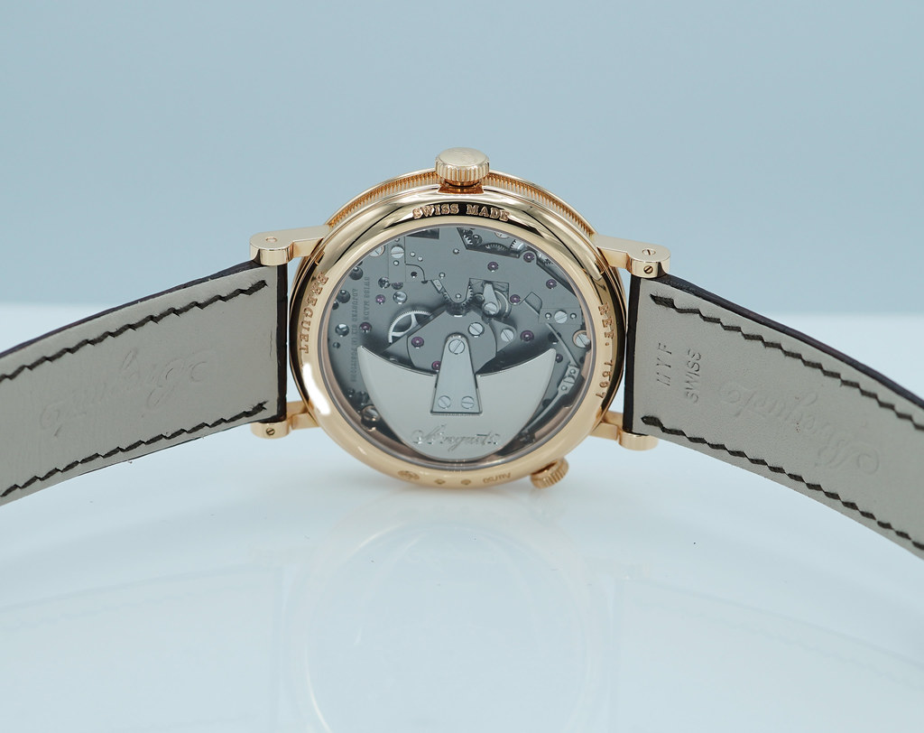 A Brand New In Box & Very Beautiful 40mm Breguet 7597BR Tradition Quantième Rétrograde Rose Gold with Silver Dial. Automatic Movement with 50 hours Power reserve. It’s on Dark Brown Leather Strap with Rose Gold Tang Buckle. Purchased from Breguet Authorized Dealer in 11.2025. Unworn. Full Set & Under 5 Years Factory Warranty.