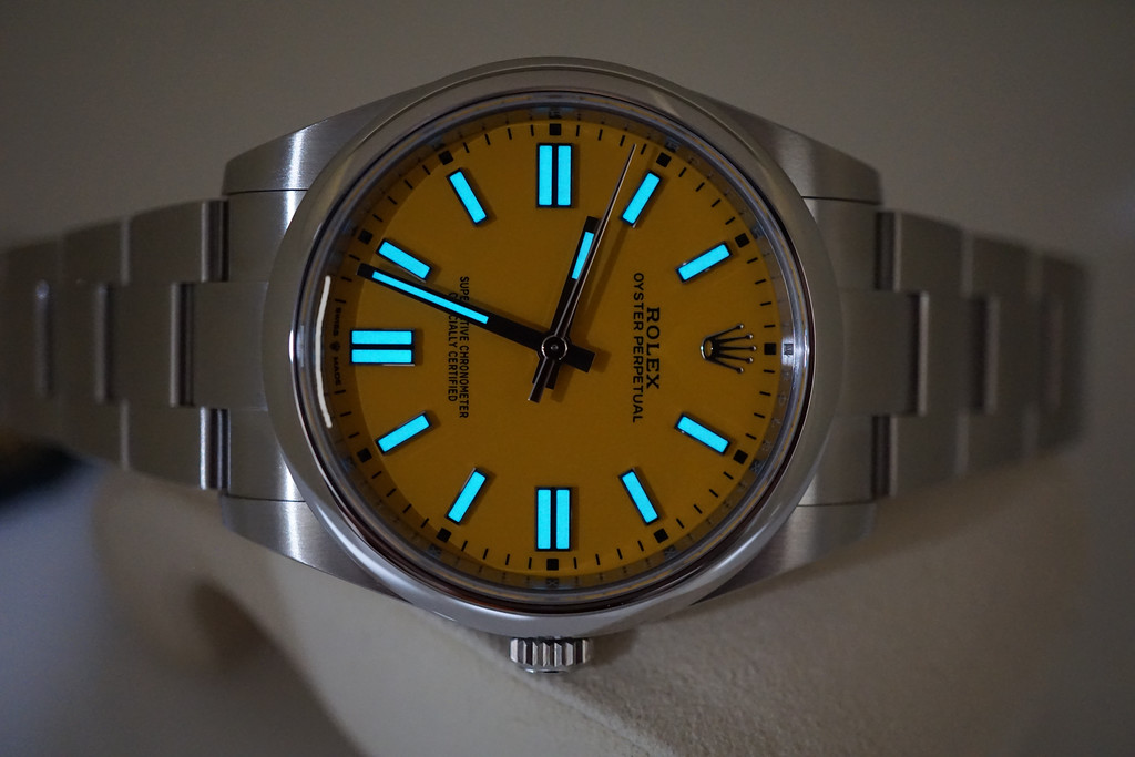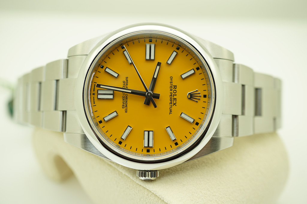 A Brand New in Box Condition & Very Beautiful 41mm Rolex 124300 Oyster Perpetual Stainless Steel with Beautiful Yellow Dial. Purchased from Rolex Authorized Dealer in 08.2021. Never Worn & Never Sized.