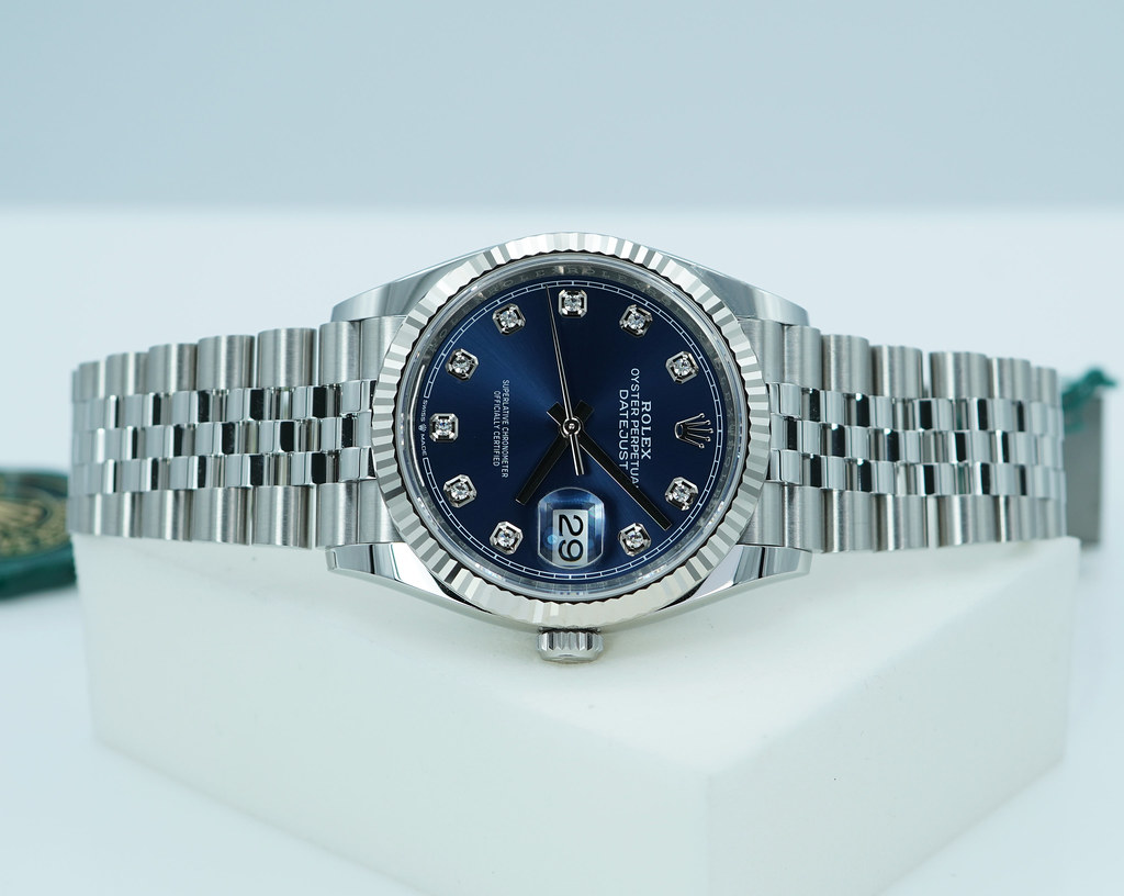 A Brand New In Box & Very Beautiful 2025 36mm Rolex 126234 Datejust Stainless Steel with 18K White Gold Fluted Bezel & Blue Diamonds Dial. It’s on Jubilee Bracelet. New Rolex 3235 Movement. Purchased from Rolex Authorized Dealer in 09.2025.