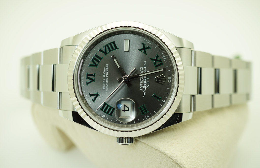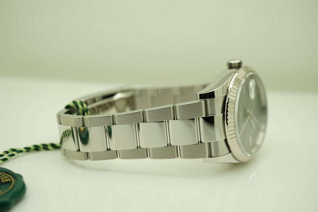 A Brand New in Box & Very Beautiful 36mm Rolex 126234 Datejust Stainless Steel with 18K White Gold Fluted Bezel, Wimbledon Sticks Dial & on Oyster Bracelet. Purchased from Rolex Authorized Dealer in 06.2021. Never Worn & Never Sized.