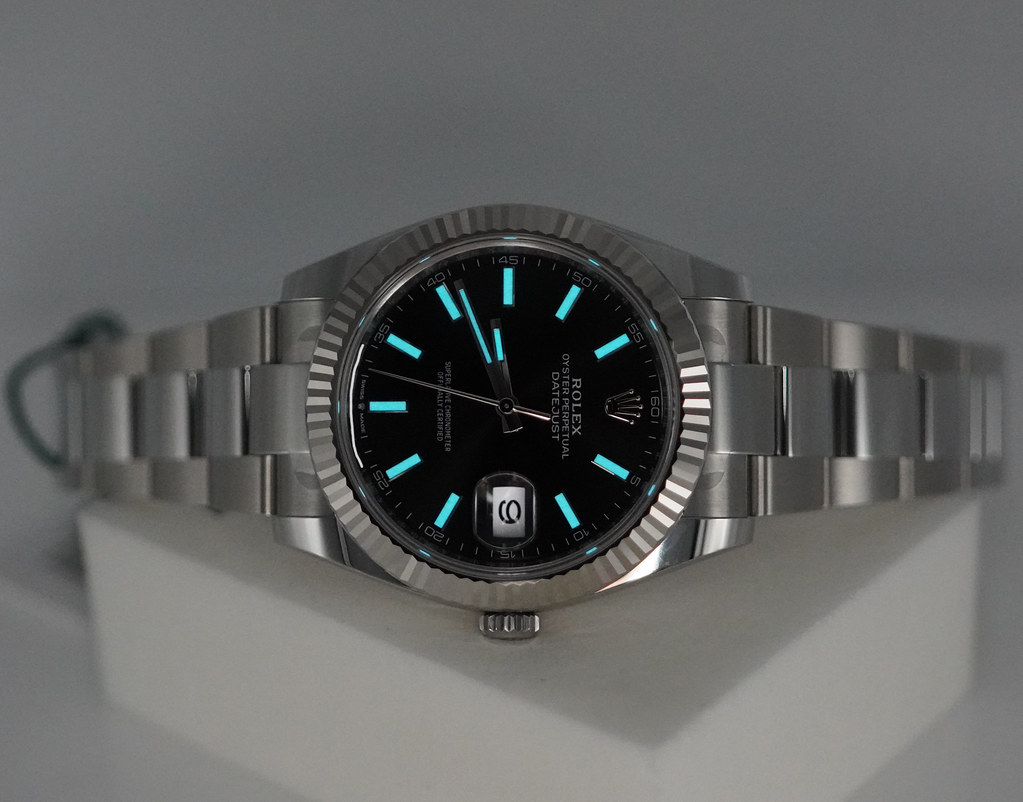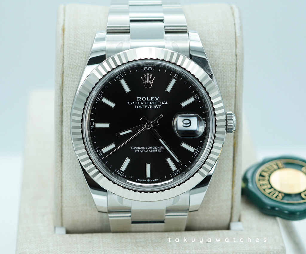 A Brand New In Box & Very Beautiful 2025 41mm Rolex 126334 Datejust 41 Stainless Steel with 18K White Gold Fluted Bezel, Bright Black Index Dial. It’s on Oyster Bracelet. Purchased from Rolex Authorized Dealer in 06.2025. Unworn & Unsized. Full Set. Under 5 Years Factory Warranty.