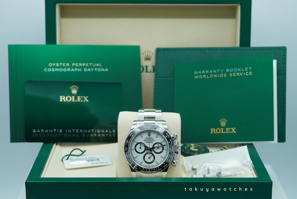 Complete Packages/Set (double boxes with sleeve, Rolex Green Tag, White Serial Numbers Tag), & Complete Manuals/Papers with New Style Warranty Card Dated 10.2025. The Watch is Under Factory Warranty.