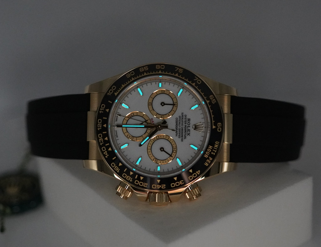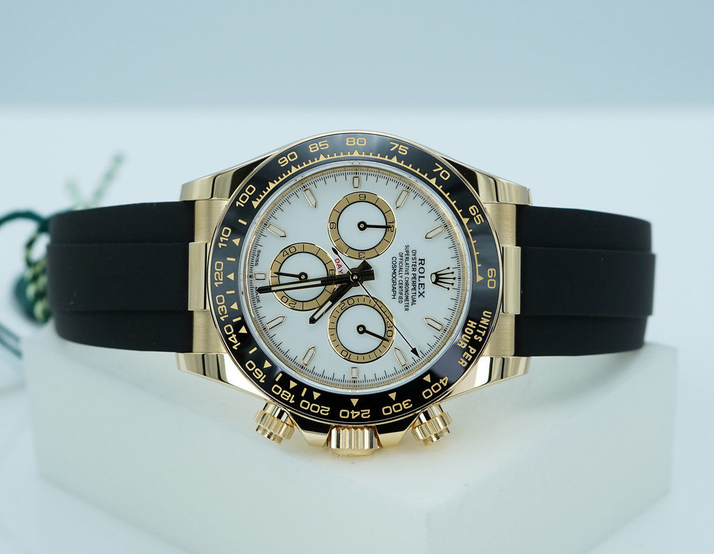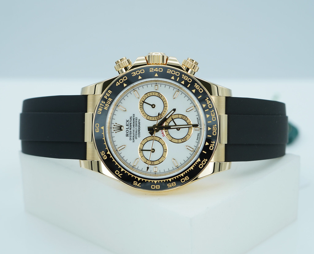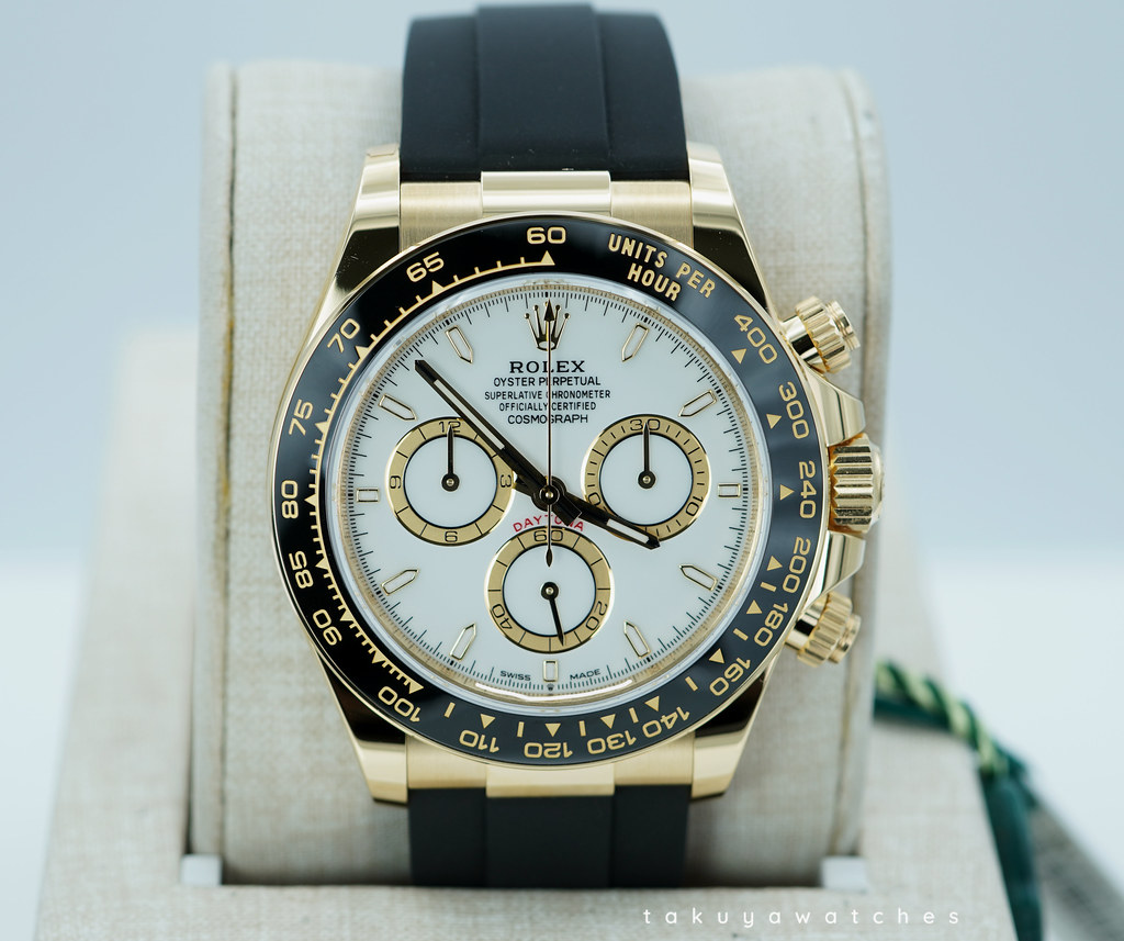 A Brand New In Box & Very Beautiful New Model 2025 40mm Rolex 126518ln Daytona 18K Yellow Gold with White Dial & Golden Counter Rings. Its on Oysterflex Strap with Yellow Gold Glidelock Clasp. Purchased from Rolex USA Authorized Dealer in 09.2025.