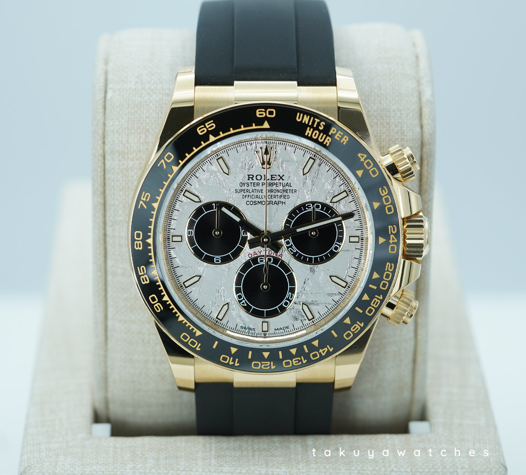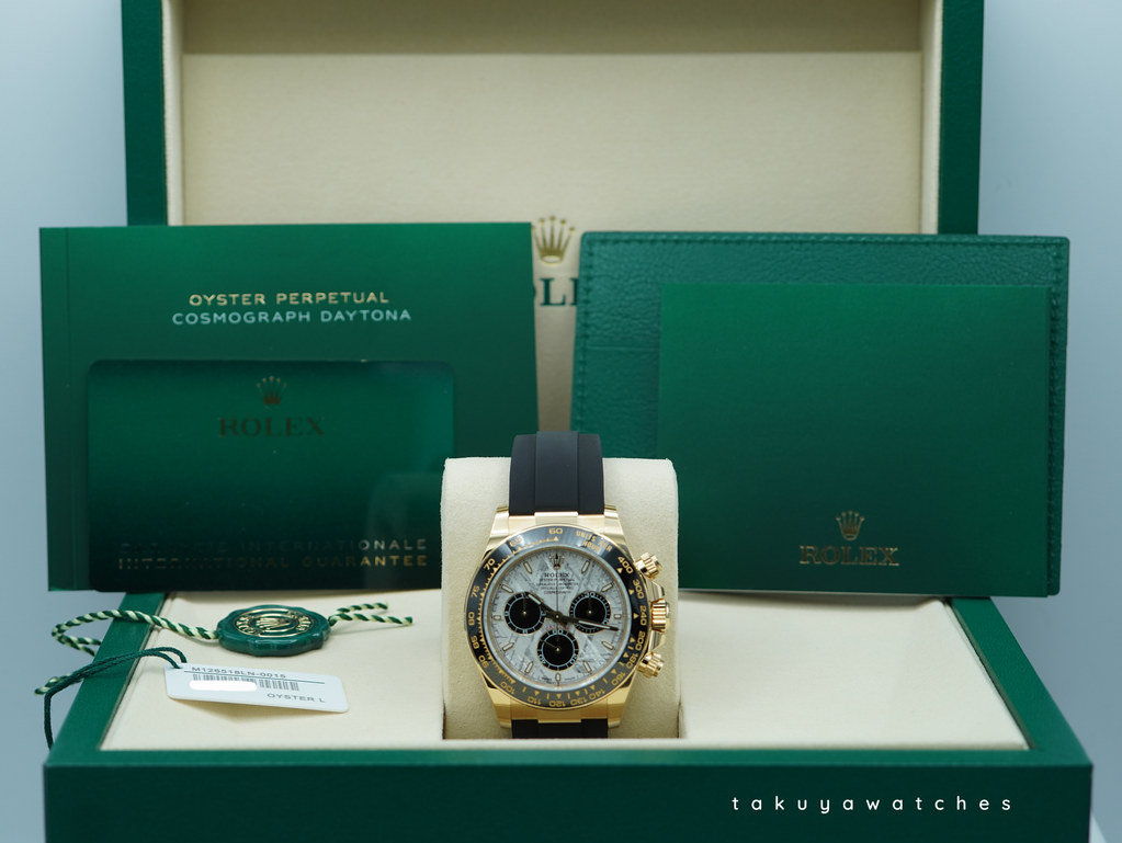 A Brand New In Box & Very Beautiful New Model 2025 40mm Rolex 126518ln Daytona 18K Yellow Gold with Meteorite Dial & Golden Counter Rings. Its on Oysterflex Strap with Yellow Gold Glidelock Clasp. Purchased from Rolex Authorized Dealer in 12.2025.