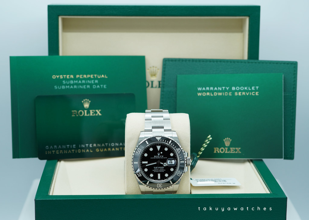 Complete Packages/Set (double boxes with sleeve, Rolex Green Tag, White Serial Numbers Tag), & Complete Manuals/Papers with New Style Warranty Card Dated 10.2025. The Watch is Under Factory Warranty.