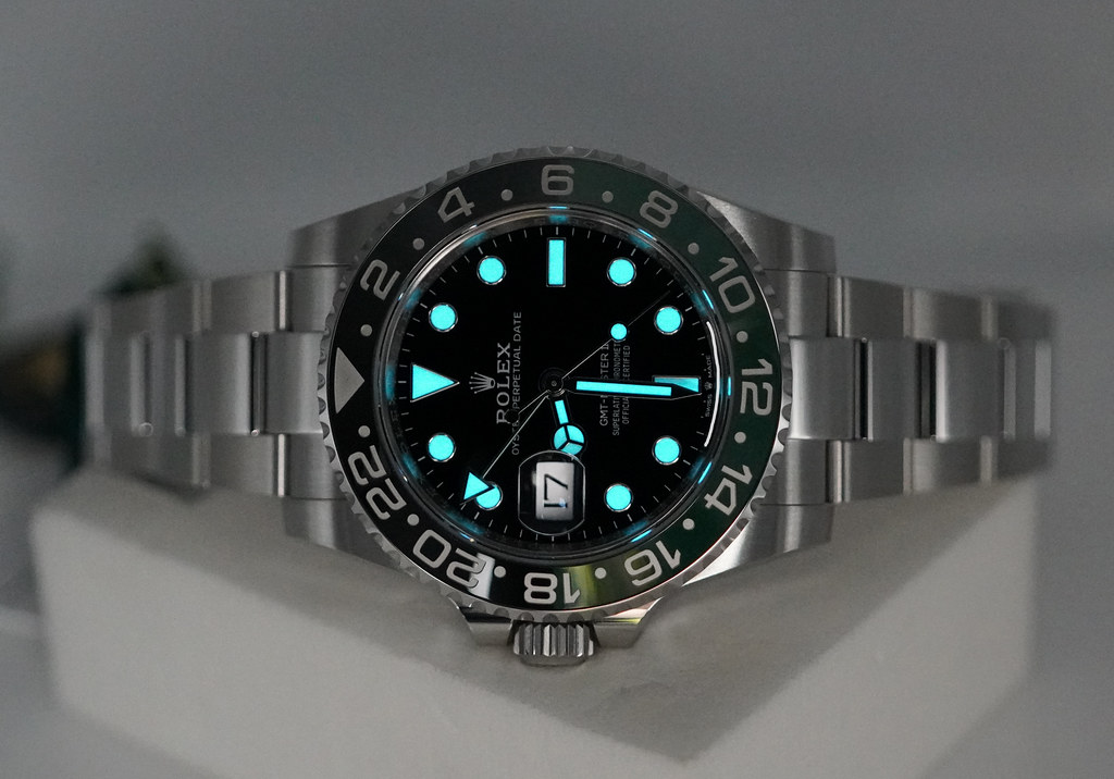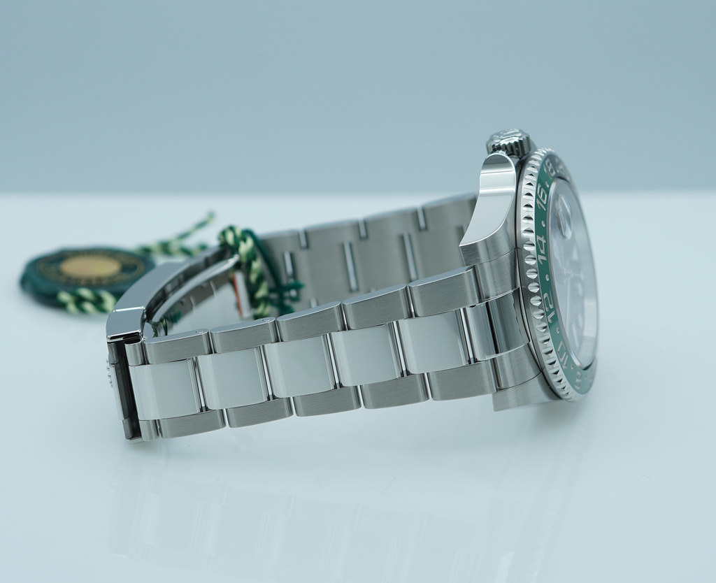 A Brand New In Box & Very Beautiful 2025 40mm Rolex Sprite 126720 Vtnr Gmt Master 2 Left Handed Stainless Steel with Black & Green Ceramic Bezel. Its on Oyster Bracelet. Purchased from Rolex Authorized Dealer in 12.2025.