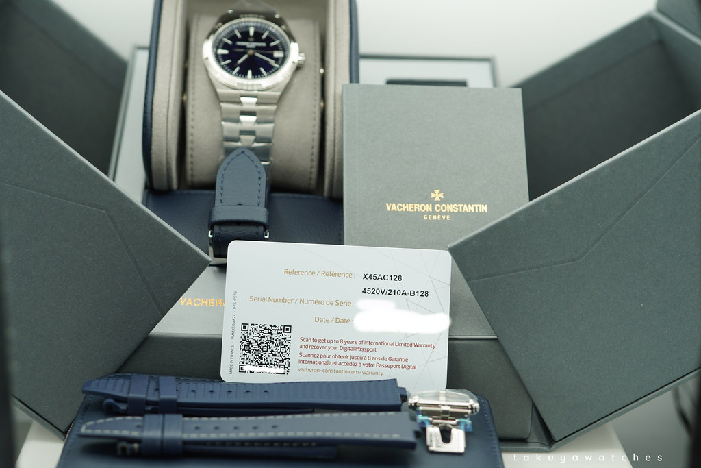 A Brand New In Box with Stickers Intact & Very Beautiful New 2025 Model 41mm Vacheron Constantin Overseas 4520 Stainless Steel with Blue Dial. Purchased from Vacheron Constantin Authorized Dealer in 10.2025. Unworn & Unsized. Complete Set with Additional OEM Blue Leather Strap & Blue Rubber Strap with Stainless Steel Deployant Clasp.
