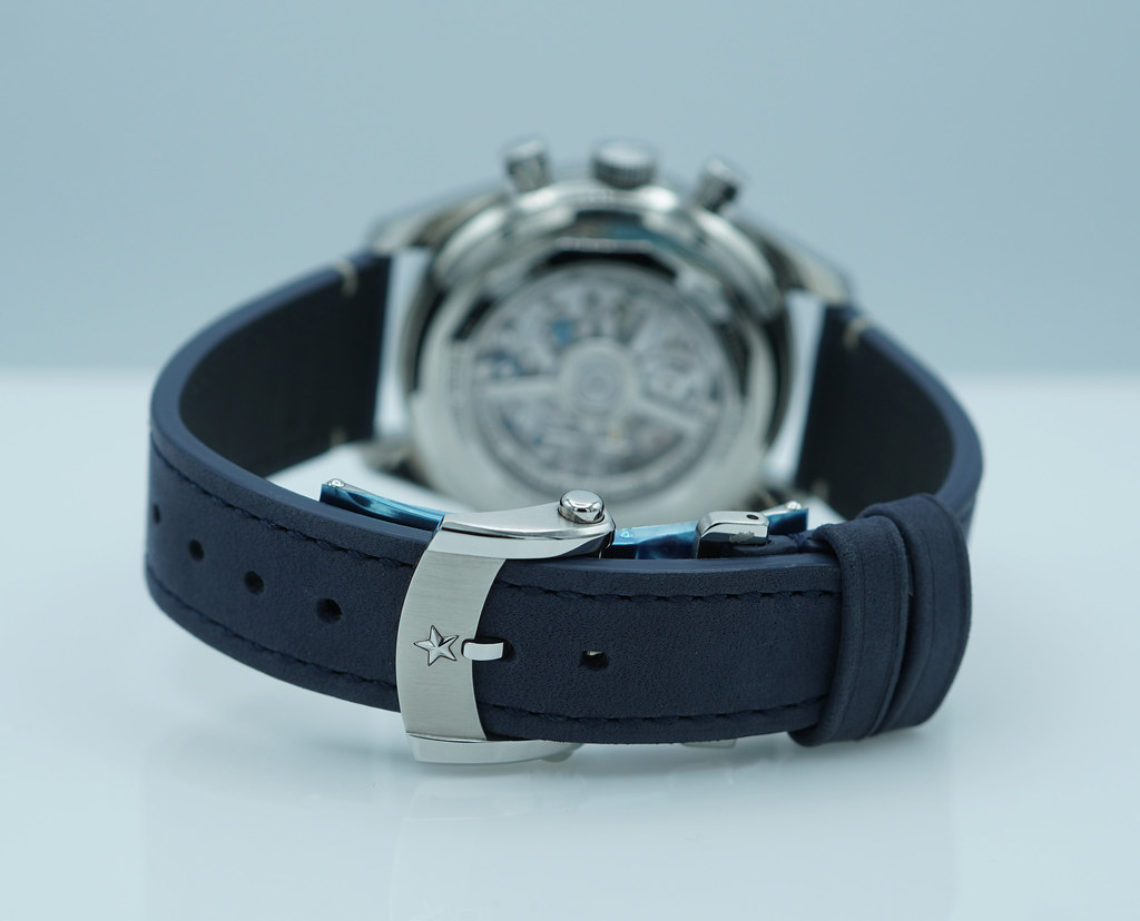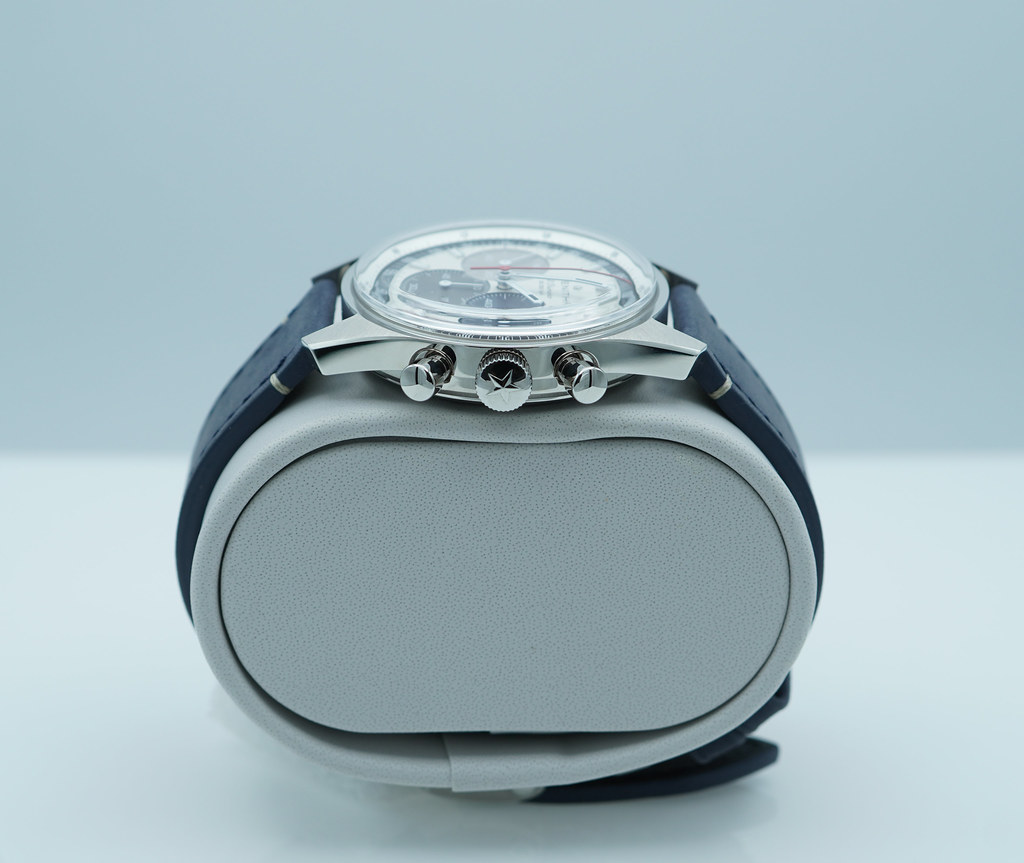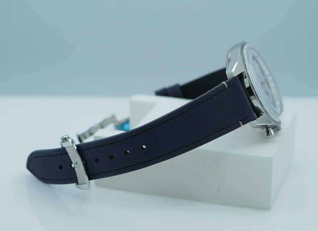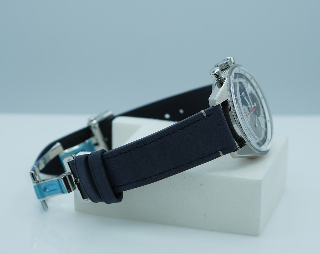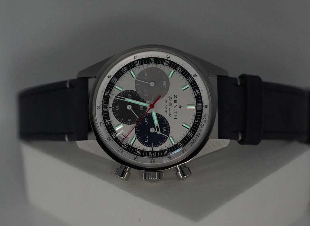 A Brand New In Box & Very Beautiful 2025 38mm Zenith El Primero Chronomaster Original with Iconic Tri-Color Dial. Stainless Steel Case on Blue Nubuck Claf Leather Strap with Deployant Clasp. El Primero 3600 Movement. Just Purchased from Zenith Authorized Dealer in 10.2025.