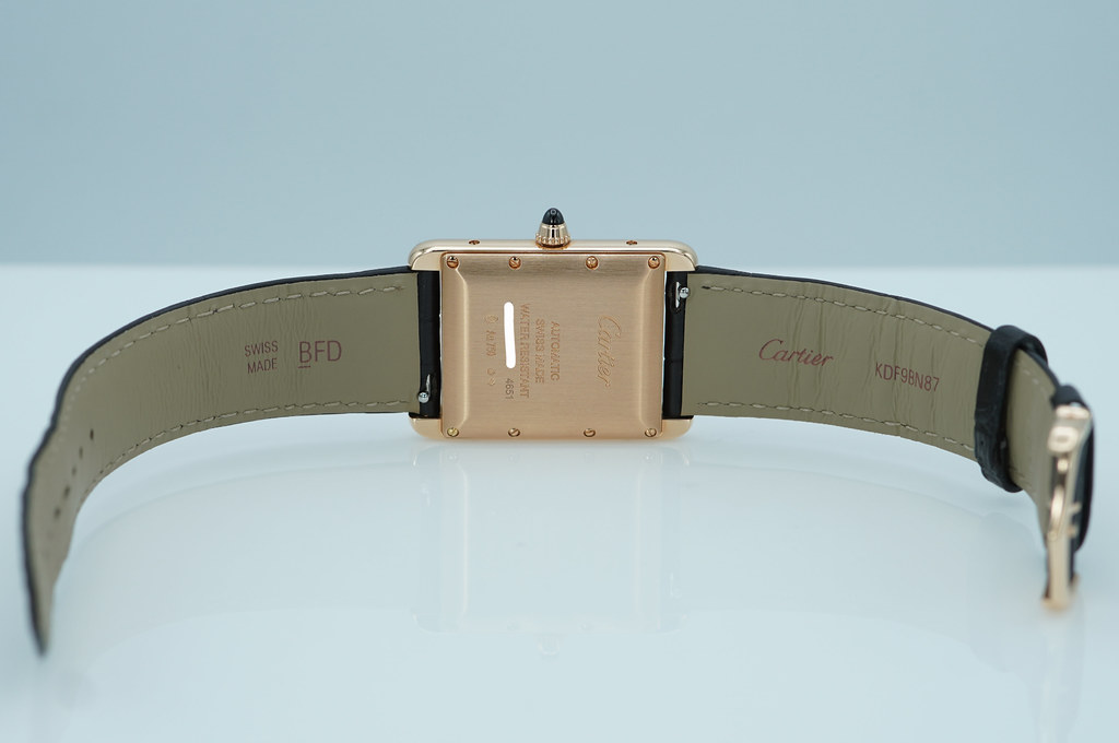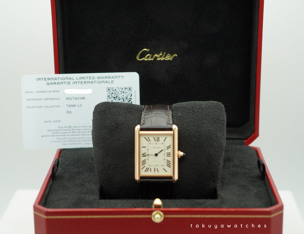 A Mint, Unpolished Condition & Very Beautiful New 2025 Model Cartier Tank Louis Cartier Large Model Automatic Movement. 18K Rose Gold Case, Stamped Silvered Dial with Yellow Varnish and Blued Hands. It’s on Brown Alligator Strap with 18K Rose Gold Tang Buckle. Purchased from Cartier USA Authorized Dealer in 09.2025.
