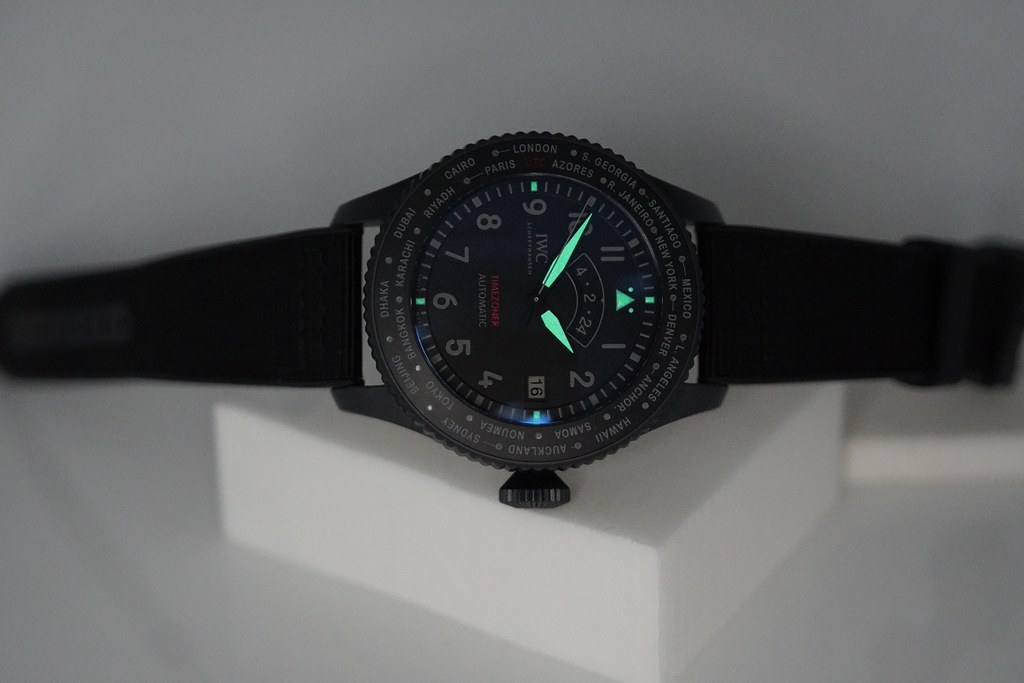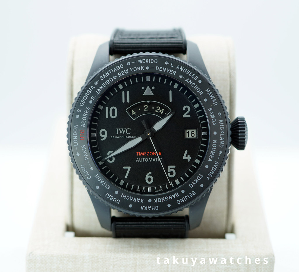 An Excellent Condition & Very Beautiful 2026 46mm IWC Pilot Watch Timezoner Top Gun Ceratanium in Full Ceramic with Black Dial. Automatic In-House 82760 Movement with 60 Power Reserve. It’s on Black Rubber Strap. Purchased from IWC USA Authorized Dealer in 02.2026.