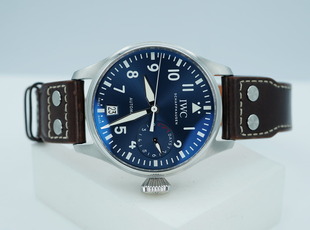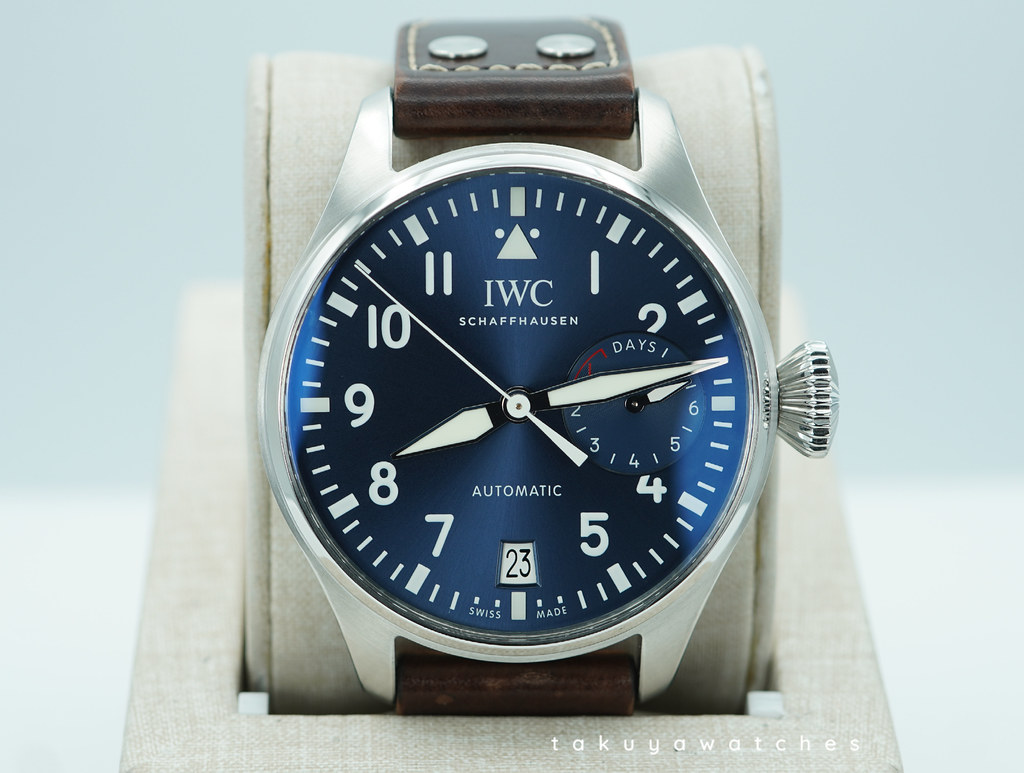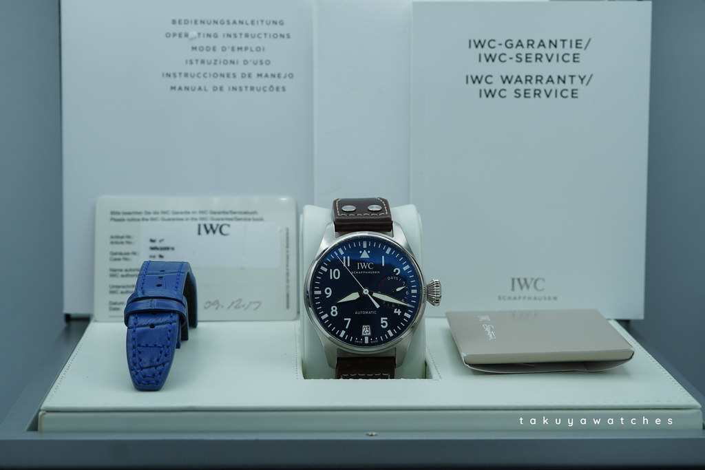 An Excellent Condition & Very Cool 2017 46mm Iwc Big Pilot IW5009 Le Petit Prince Stainless Steel with Midnight Blue Dial, Automatic Movement with 7 Days Power Reserve. Its on Iwc Dark Brown Calf Strap with Steel Deployant Clasp. Purchased from IWC Authorized Dealer in 09.2017.