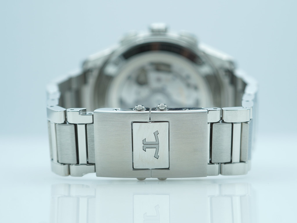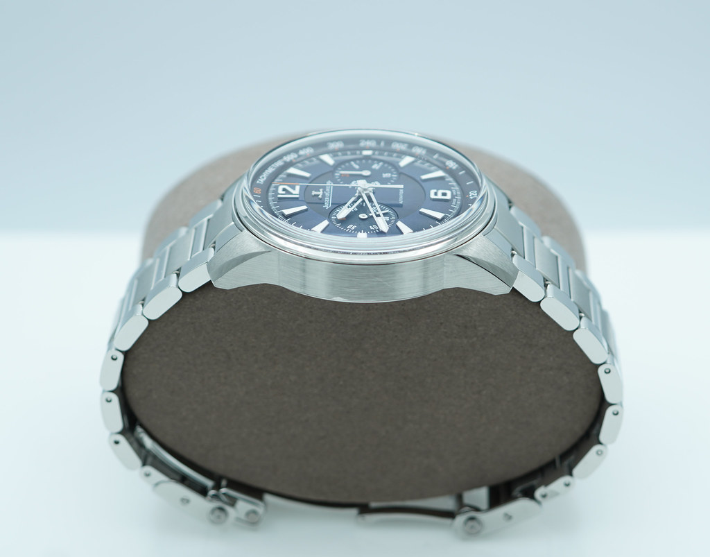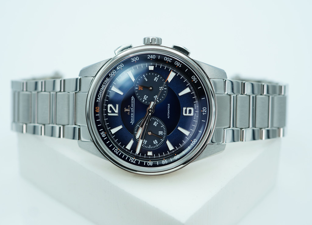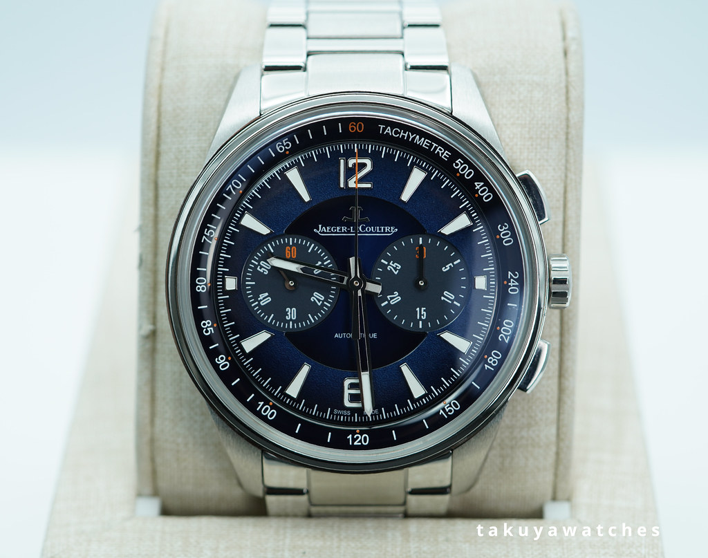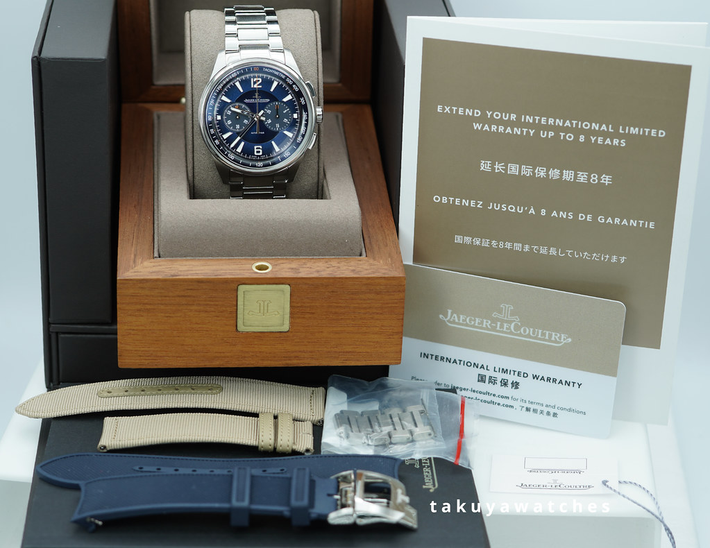An Excellent, Unpolished Condition & Very Beautiful 2024 42mm Jaeger LeCoultre Polaris Chronograph Stainless Steel with Gradient Blue Dial. It’s on Stainless Steel Bracelet. Additional Beige Fabric Strap and Blue Rubber Strap with Double Folding Buckle. Jlc Caliber 761 with Power Reverse 65 Hours. Purchased from JLC USA Authorized Dealer in 11.2024. Watch Running Perfect with Non Issues. Full Links. Full Set & Under 8 Years Factory Warranty.