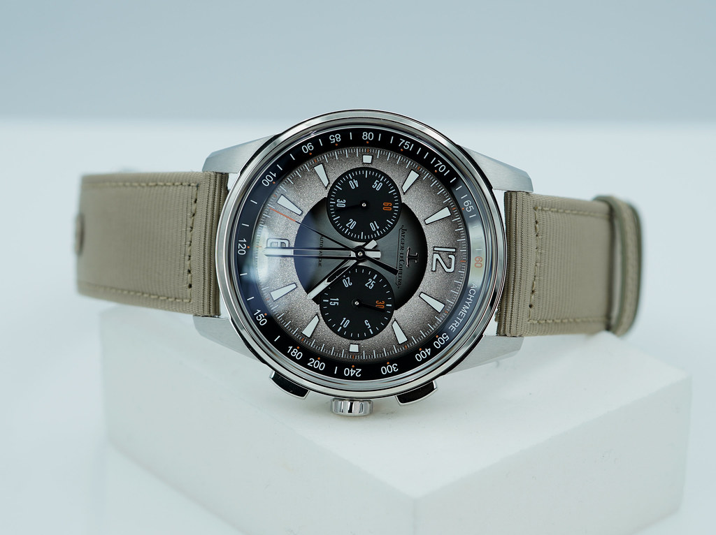 A Mint, Unpolished Condition & Very Beautiful 2024 42mm Jaeger LeCoultre Polaris Chronograph Stainless Steel with Grey grained sunburst dial. Its on Beige Fabric Strap and Additional Black Rubber Strap with Double Folding Buckle. Jlc Caliber 761 with Power Reverse 65 Hours. Purchased from JLC USA Authorized Dealer in 06.2024.
