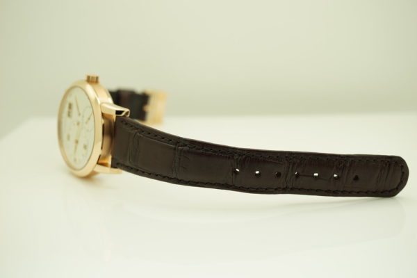 A Mint, Unpolished Condition & Very Beautiful 2020 38.5mm A. Lange & Sohne Lange 1 18K Pink Gold with Silver Dial, on Lange Dark Brown Alligator Strap with 18k Pink Gold Tang Buckle. Just Purchased from A. Lange & Sohne USA Authorized Dealer in 11.2020.