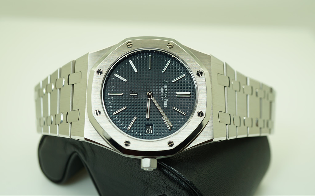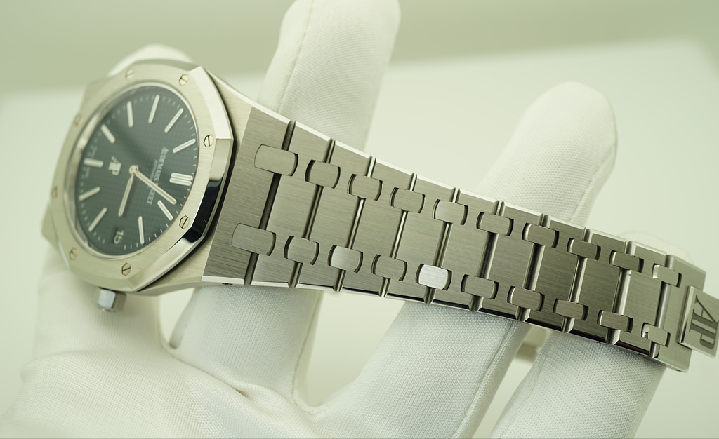 A Mint, Unpolished Condition & Very Beautiful 39mm Audemars Piguet Royal Oak Jumbo Extra-thin 15202 Stainless Steel in J Series with Dark Blue Dial & New Style Clasp. Purchased from Audemars Piguet Authorized Dealer in 02.2017.