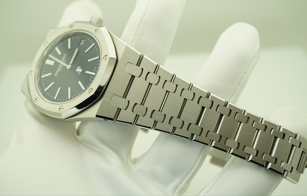 A Mint, Unpolished Condition & Very Beautiful 39mm Audemars Piguet Royal Oak Jumbo Extra-thin 15202 Stainless Steel in J Series with Dark Blue Dial & New Style Clasp. Purchased from Audemars Piguet Authorized Dealer in 02.2017. Watch running perfect with Non Issues. Full Links. Full Set & Under 5 Years Factory Warranty.