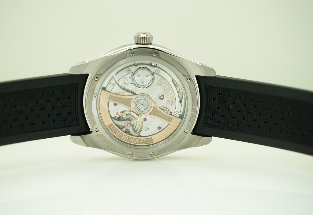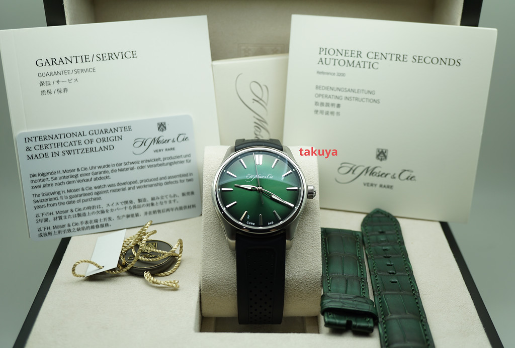 Complete Package/Set (Triple Boxes with Hangtag), & Complete Manuals/Papers with Warranty Card has H. Moser AD’s Name Printed & Dated on 11.2021. The Watch is Under Factory Warranty.