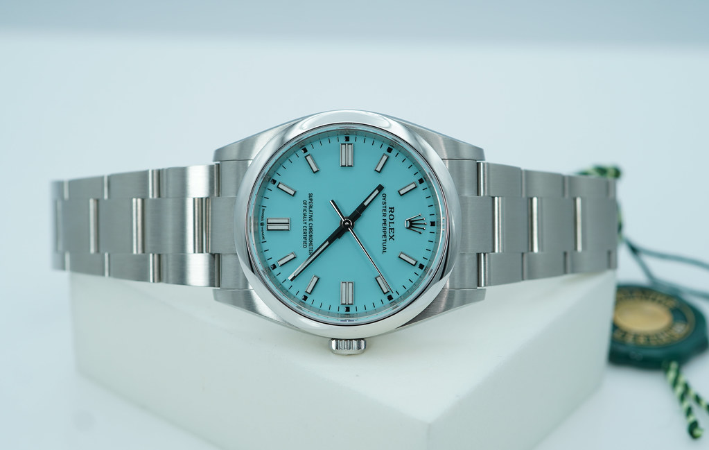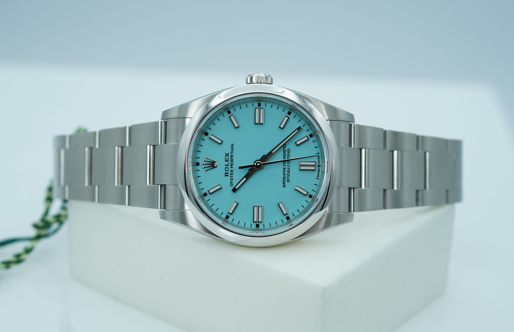 A New Old Stock & Very Beautiful 2025 36mm Rolex 126000 Oyster Perpetual Tiffany Stainless Steel with Beautiful Factory Turquoise Blue Dial. Just Purchased from Rolex Authorized Dealer in 03.2025. Unworn & Unsized.