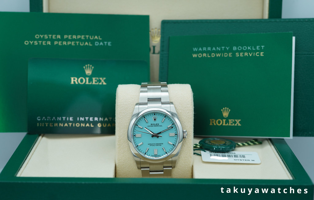 A New Old Stock & Very Beautiful 2025 36mm Rolex 126000 Oyster Perpetual Tiffany Stainless Steel with Beautiful Factory Turquoise Blue Dial. Just Purchased from Rolex Authorized Dealer in 03.2025. Unworn & Unsized. Full Set & Under 5 Years Factory Warranty.