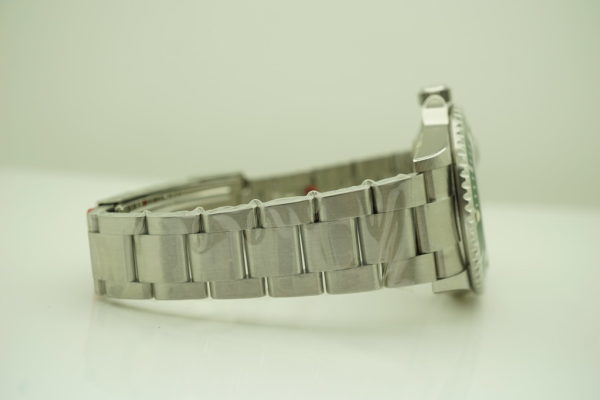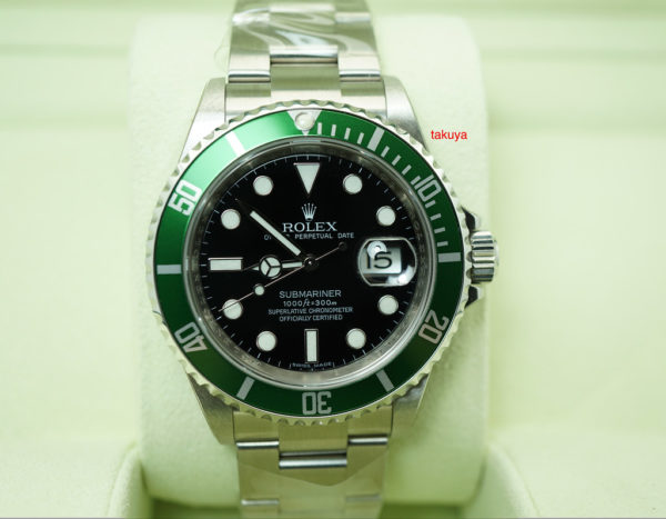 A New In Box Condition, New Old Stock, A Very Rare, Discontinued, A Very Beautiful Collectible Timepiece 40mm Rolex Kermit 50th Anniversary 16610lv Stainless Steel with Green Submariner Bezel & Black Dial, in V Serial with Rolex Engraved Rehaut. Purchased from Rolex Authorized Dealer in 06.2009. Never Worn & Never Sized with Full Stickers Intact.