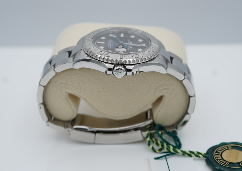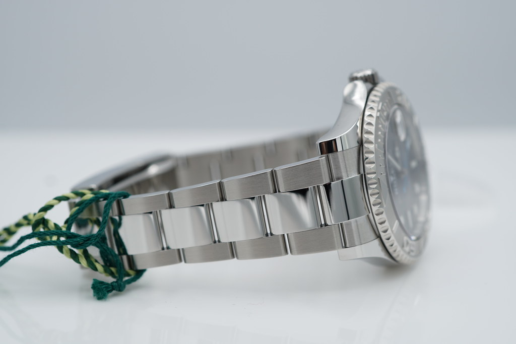 A New Old Stock & Very Beautiful 37mm Rolex 268622 Yacht-Master Stainless Steel with Platinum Bezel, Slate Dial & Blue Second Hand. Purchased from Rolex Authorized Dealer in 01.2022. Unworn & Unsized.