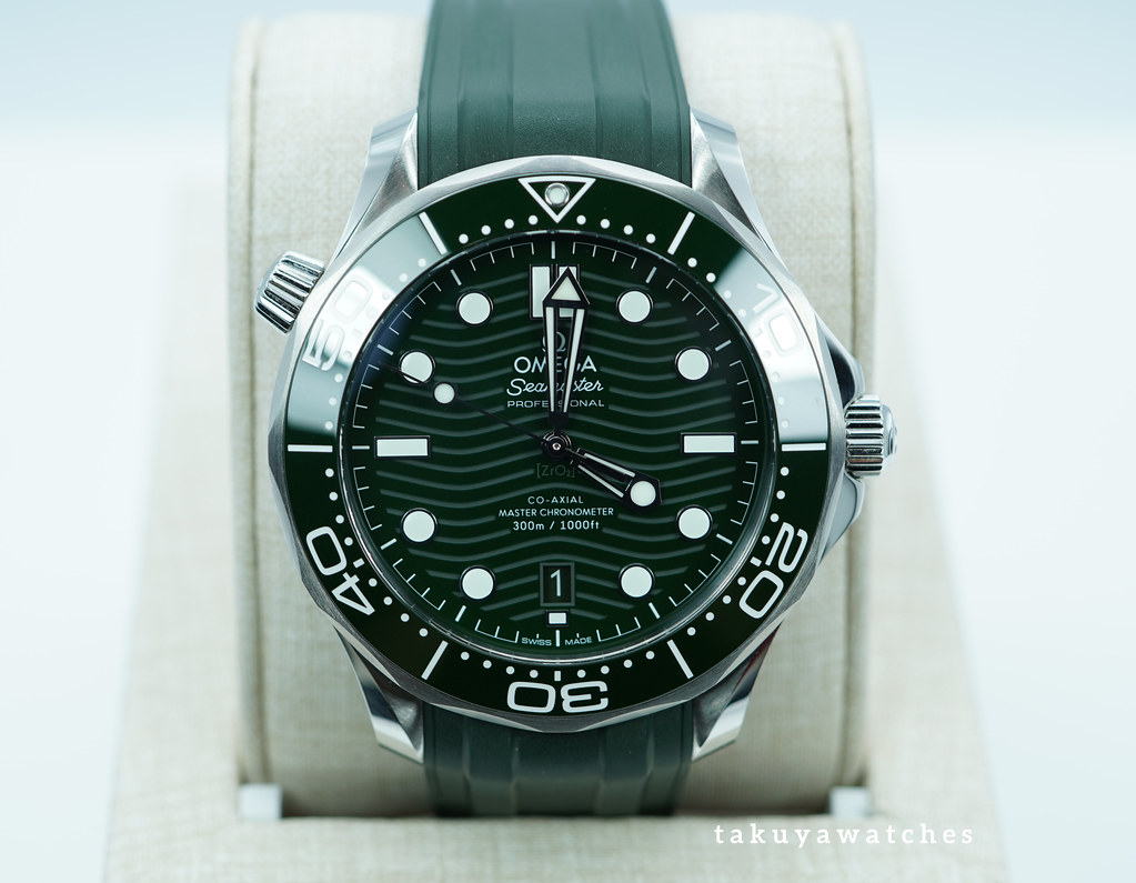 An Excellent, Unpolished Condition & Very Beautiful 2024 42mm Omega Seamaster Diver 300m Stainless Steel with Green Ceramic Bezel & Green Wave Dial. Its on Green Rubber Strap with Steel Tang Buckle. Omega Co-Axial Master Chronometer 8800 Automatic Movement. Purchased from Omega USA Authorized Dealer in 04.2023.