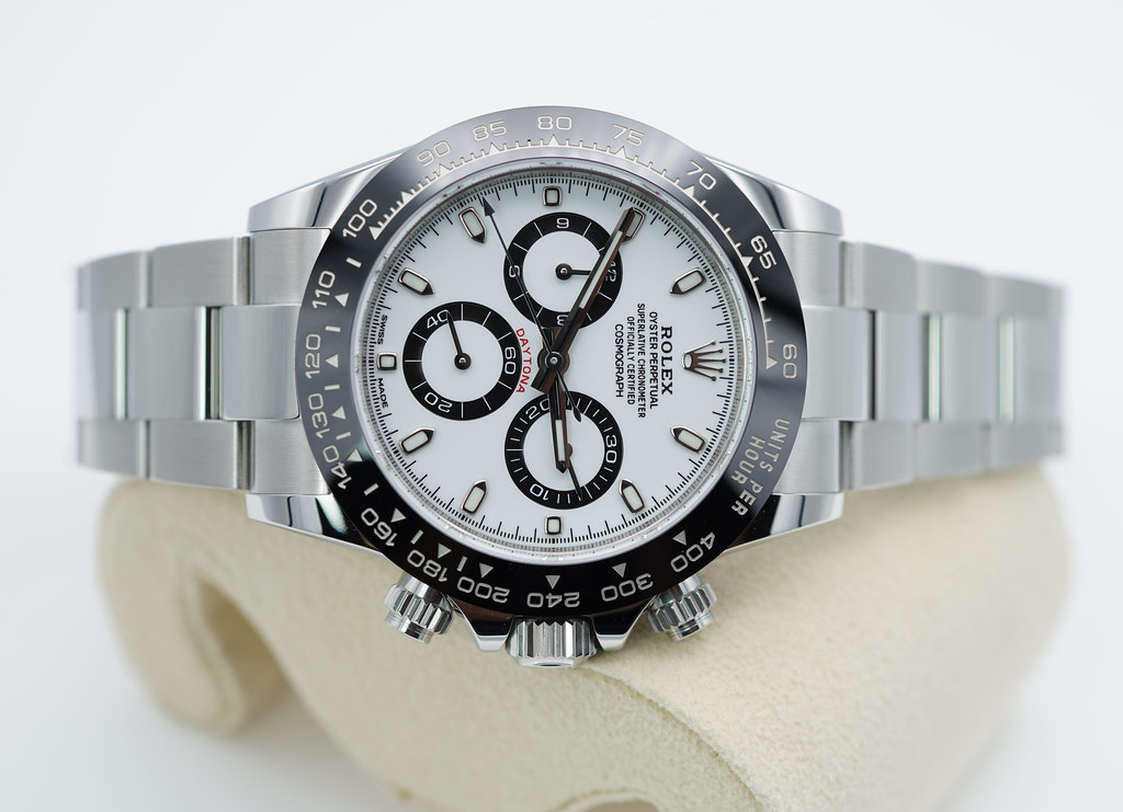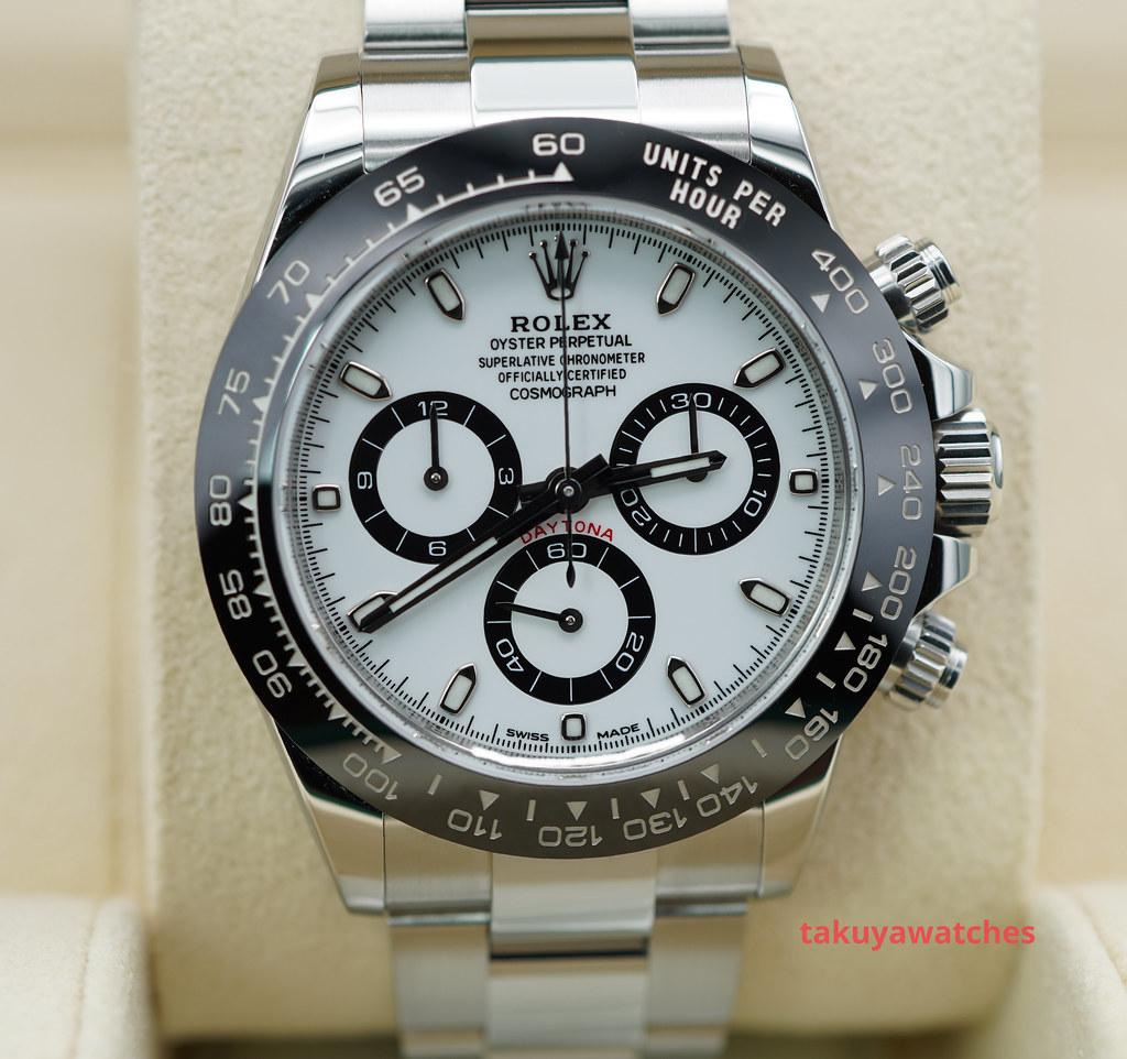An Excellent Condition & Very Beautiful Discontinued 2023 40mm Rolex Panda 116500 Cosmograph Daytona Stainless Steel with Ceramic Bezel & White Dial. Purchased from Rolex Authorized Dealer in 06.2023.