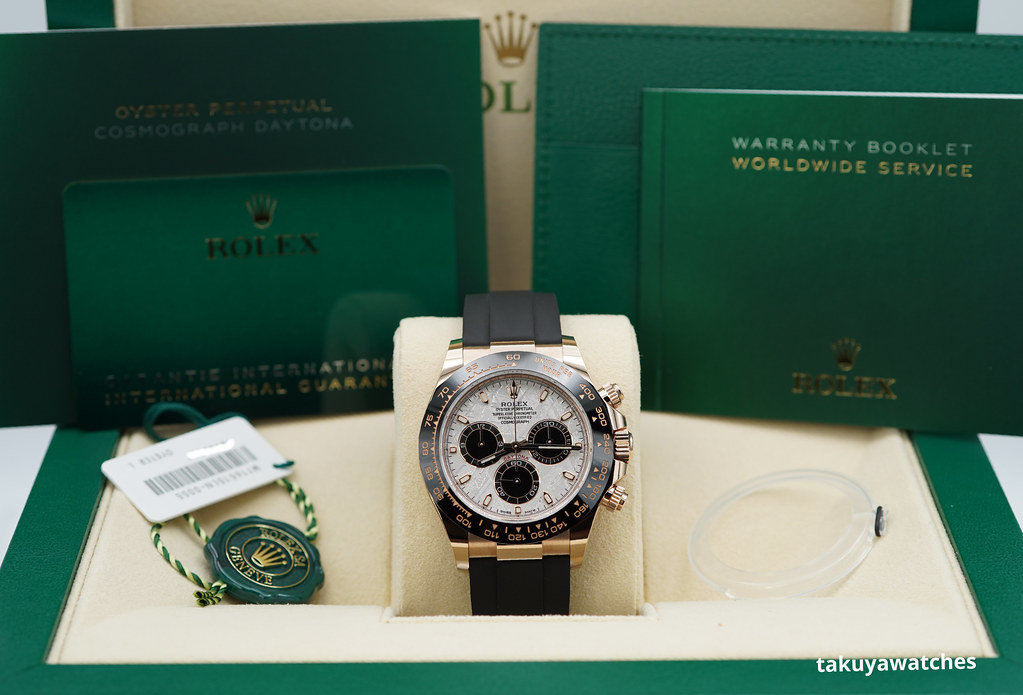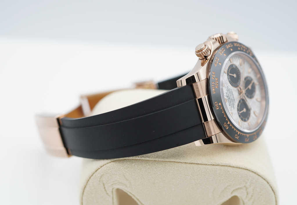 An Excellent, Unpolished Condition & Very Beautiful Discontinued 2022 40mm Rolex 116515 18K Everose Gold Daytona with Beautiful Meteorite Dial, on Oysterflex Strap with 18K Rose Gold Clasp. Purchased from Rolex Authorized Dealer in 05.2022.