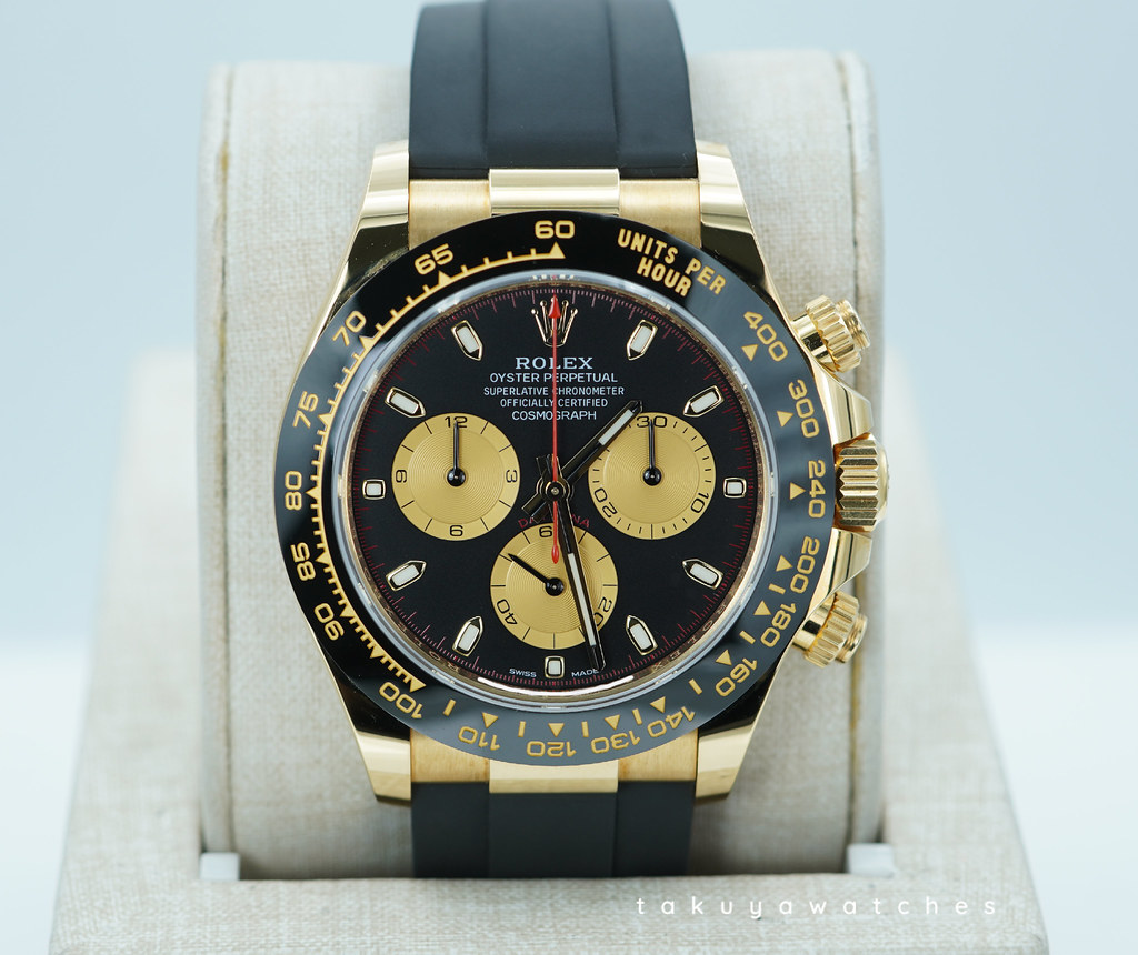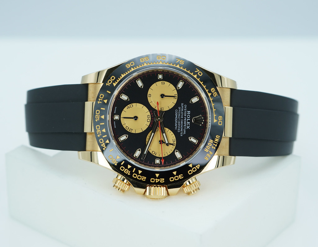 An Excellent, Unpolished Condition & Very Beautiful 2023 40mm Rolex 116518ln Daytona 18K Yellow Gold with Paul Newman Dial and Red Chronograph Hand. Its on Oysterflex Strap with 18K Yellow Gold Clasp. Purchased from Rolex Authorized Dealer in 07.2023.