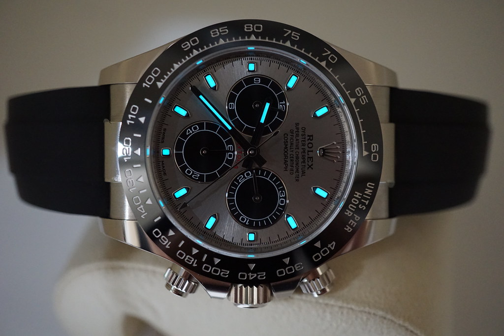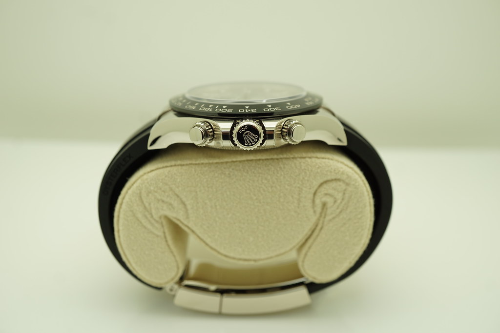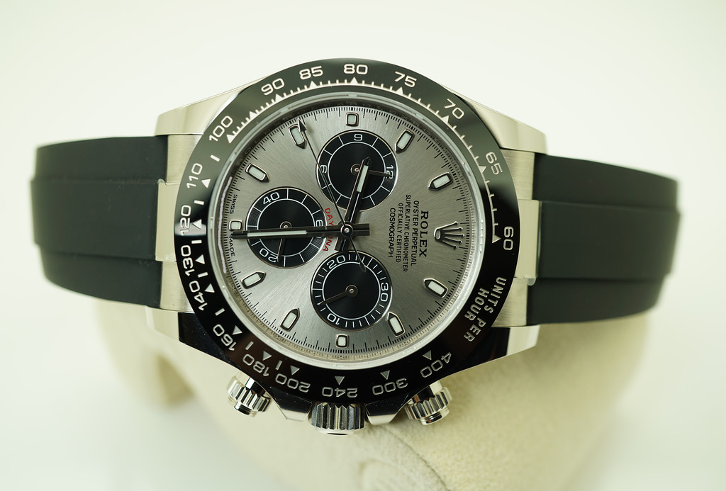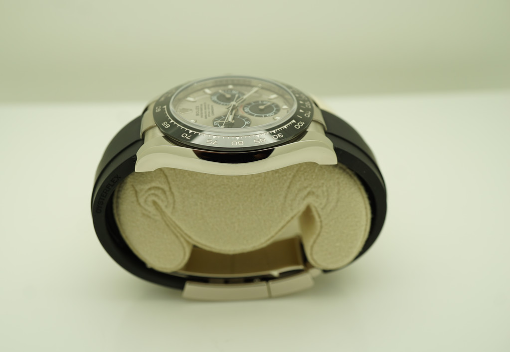 An Excellent, Unpolished Condition & Very Beautiful 2020 40mm Rolex 116519 Cosmograph Daytona 18K White Gold with Ceramic Bezel, Steel & Black Sub Dial, on Oysterflex Strap. Purchased from Rolex Authorized Dealer in 05.2021.