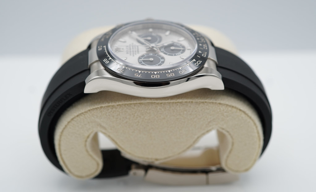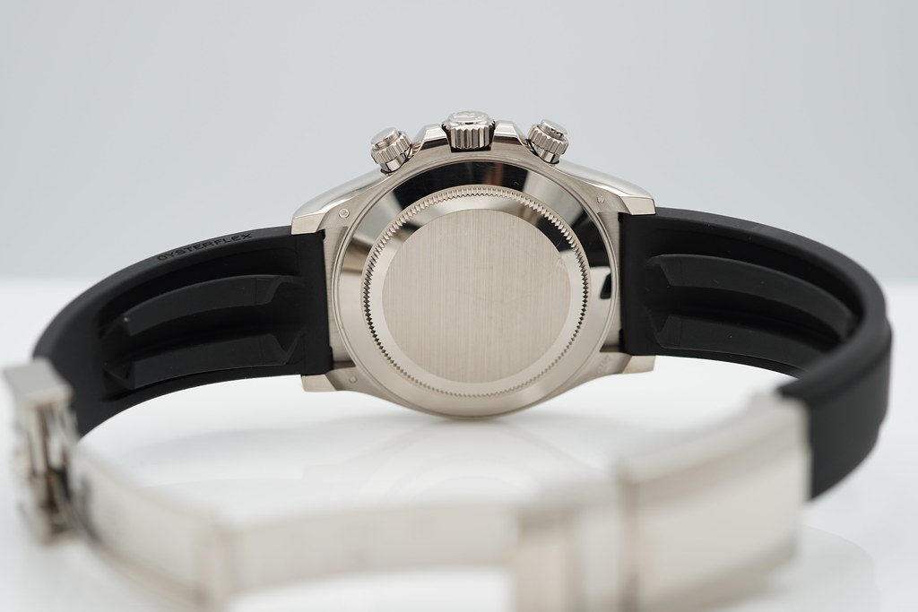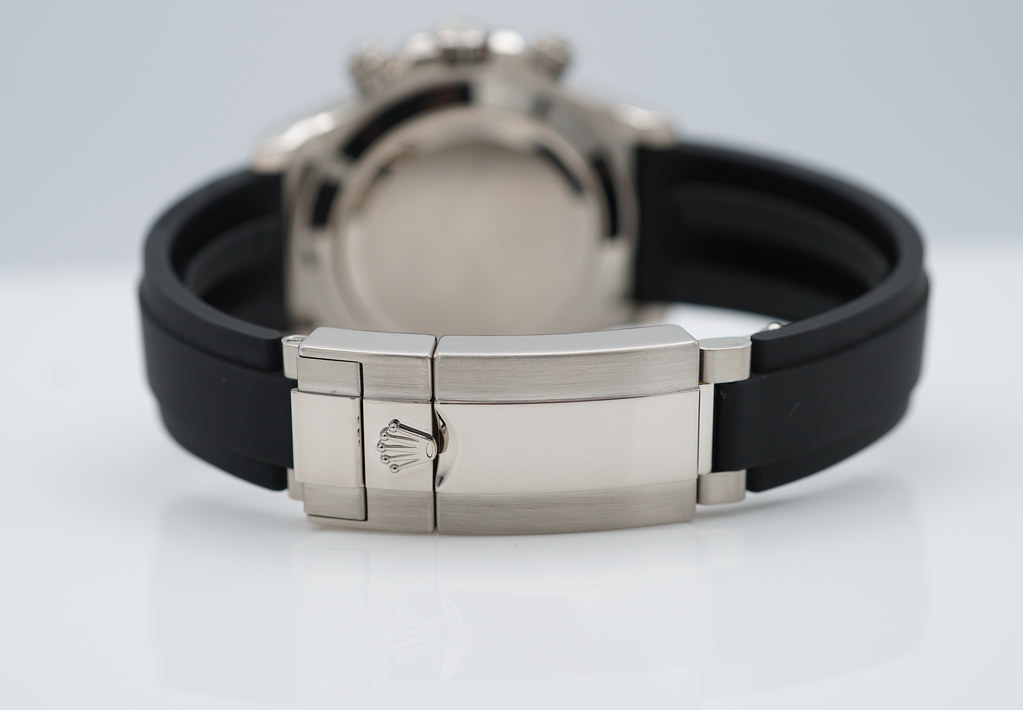 An Excellent Condition & Very Beautiful 2023 40mm Rolex 116519 Cosmograph Daytona 18K White Gold with Ceramic Bezel, Steel & Black Subs Dial, on Oysterflex Strap. Purchased from Rolex Authorized Dealer in 05.2023.