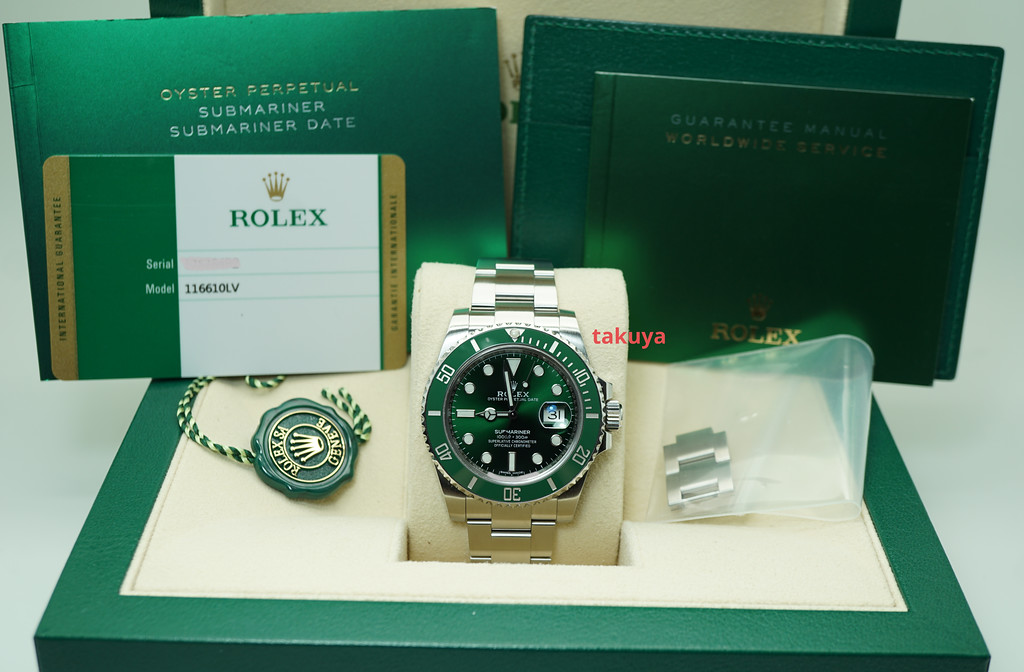 An Excellent Condition & Very Beautiful 40mm Rolex Hulk 116610lv Submariner Stainless Steel with Ceramic Green Bezel & Green Dial. Purchased from Rolex Authorized Dealer in 05.2019.