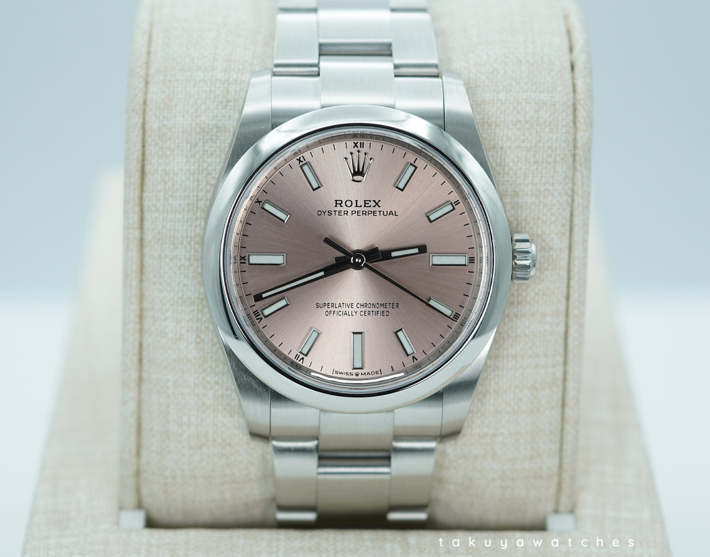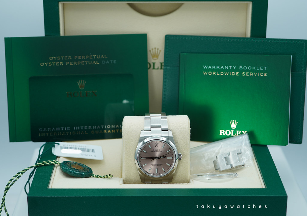 An Excellent Condition & Very Beautiful 2021 34mm Rolex 124200 Oyster Perpetual Stainless Steel with Pink Dial. New 2232 Movement with Approx. 55 Hours Power Reserver. Purchased from Rolex Authorized Dealer in 12.2021.