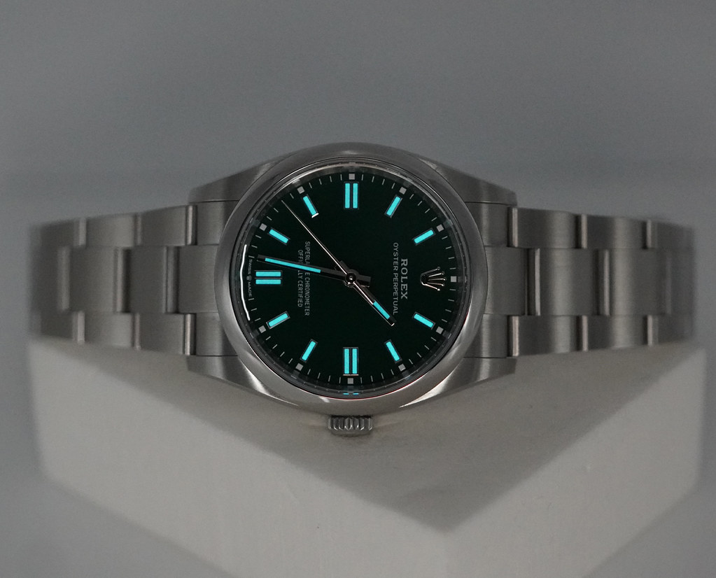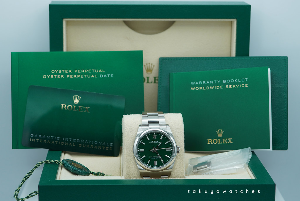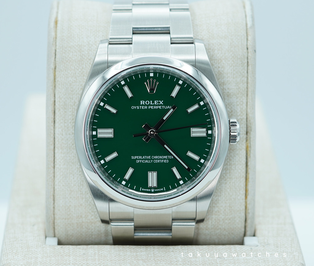 An Excellent Condition & Very Beautiful 2023 36mm Rolex 126000 Oyster Perpetual Stainless Steel with Green Dial. Purchased from Rolex Authorized Dealer in 07.2023.