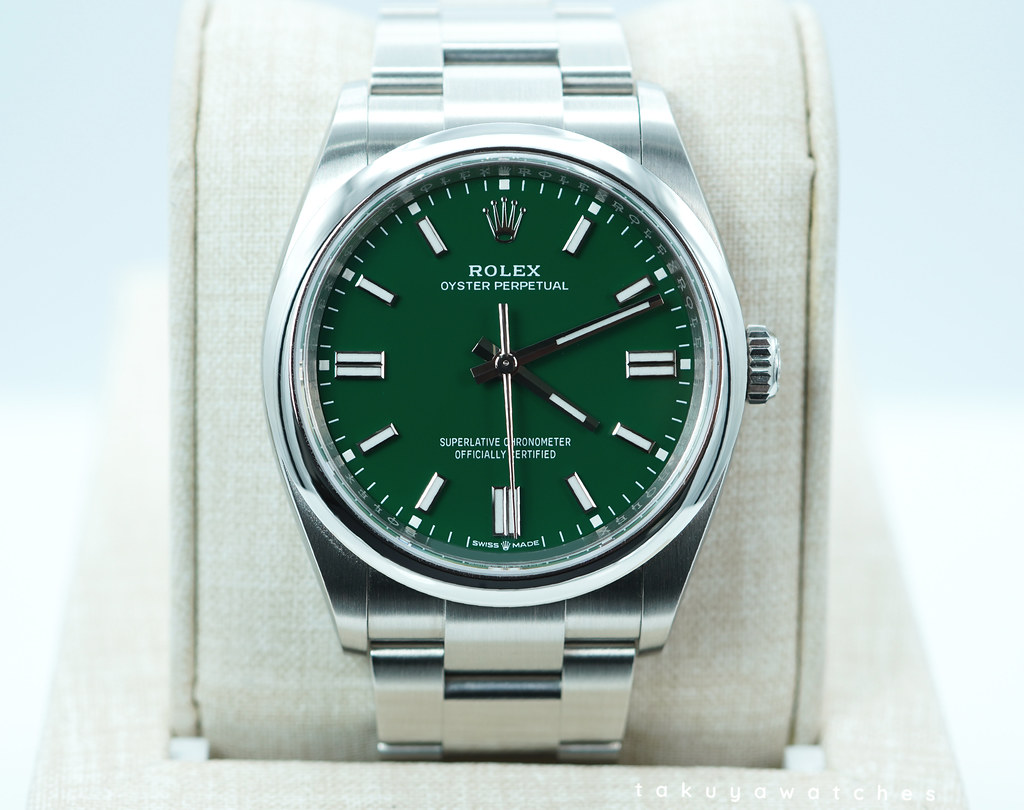 A Mint, Unpolished Condition & Very Beautiful 2024 36mm Rolex 126000 Oyster Perpetual Stainless Steel with Green Dial. Purchased from Rolex Authorized Dealer in 10.2024. SOLD