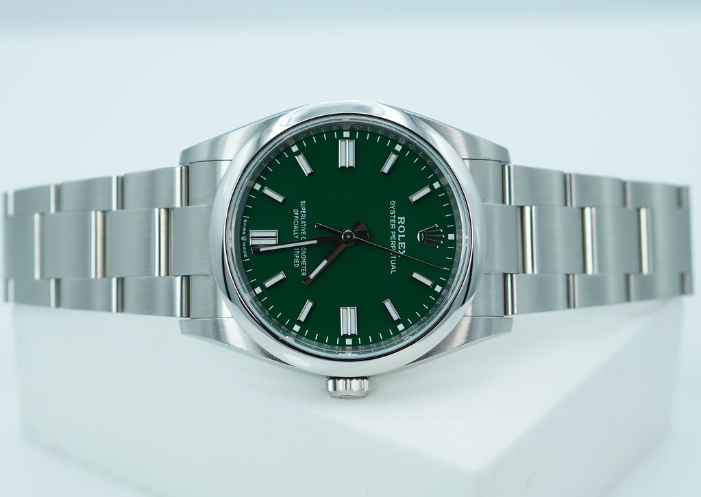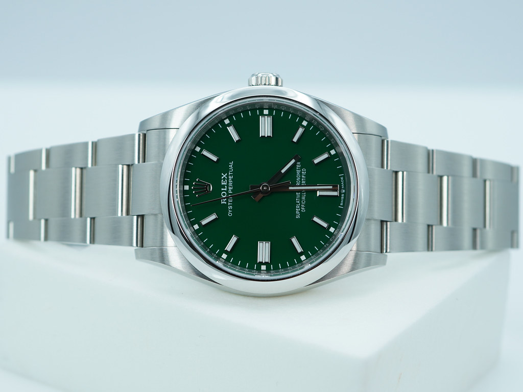 A Mint, Unpolished Condition & Very Beautiful 2024 36mm Rolex 126000 Oyster Perpetual Stainless Steel with Green Dial. Purchased from Rolex Authorized Dealer in 10.2024. Watch running perfect with Non issues. Full Links. Full Set & Under 5 Years Factory Warranty.