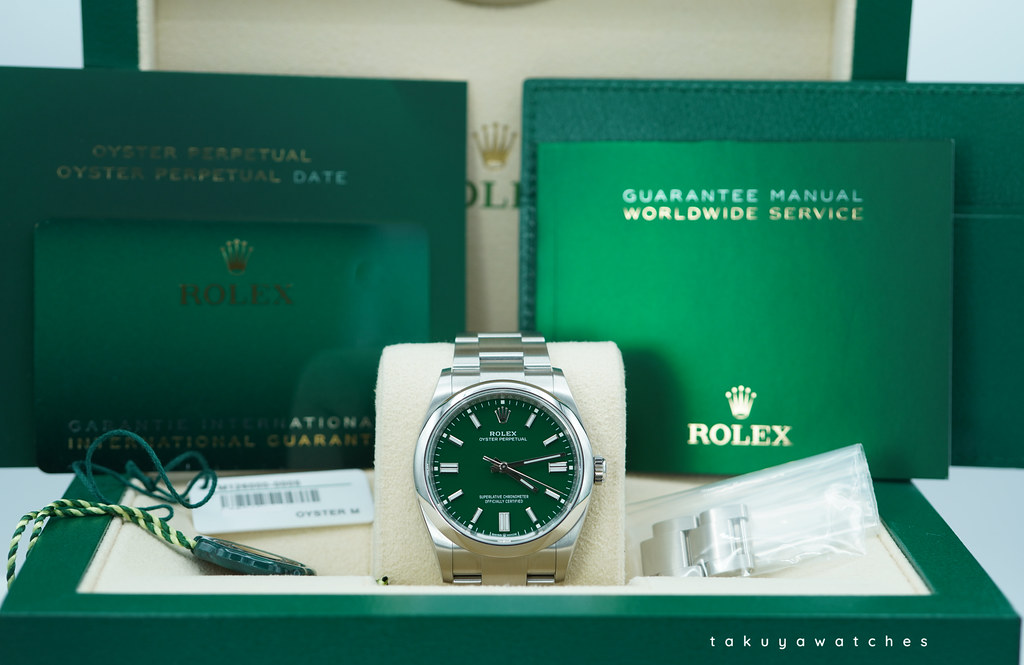 Complete Packages/Set (double boxes, Rolex Green Tag, White Serial Numbers Tag), & Complete Manuals/Papers with New Style Warranty Card Dated 10.2024. The Watch still has Plenty of Factory Warranty left.