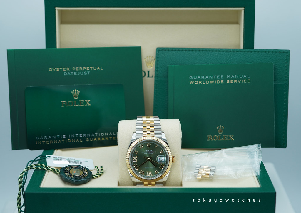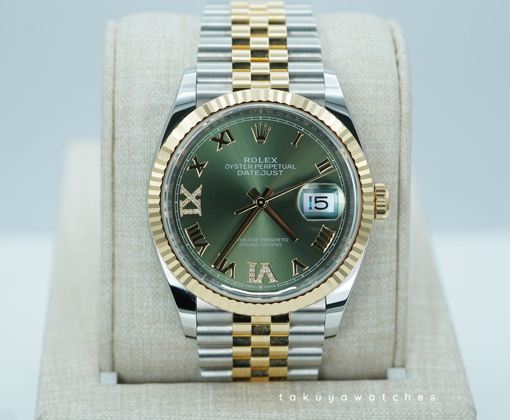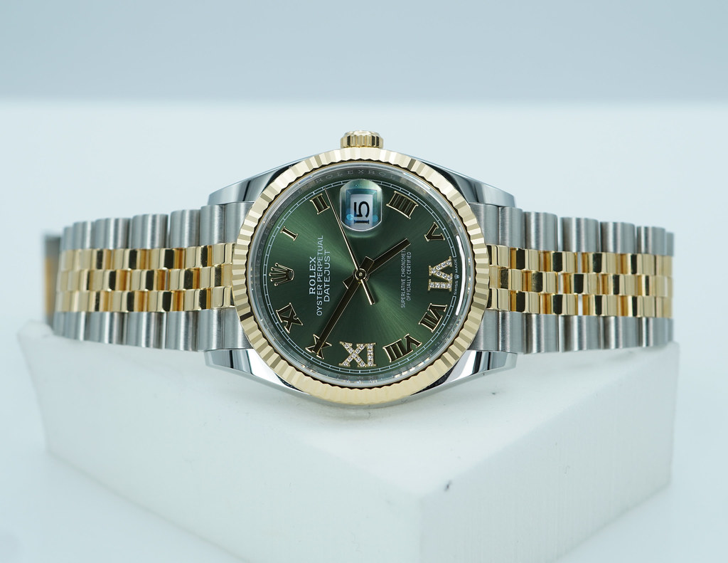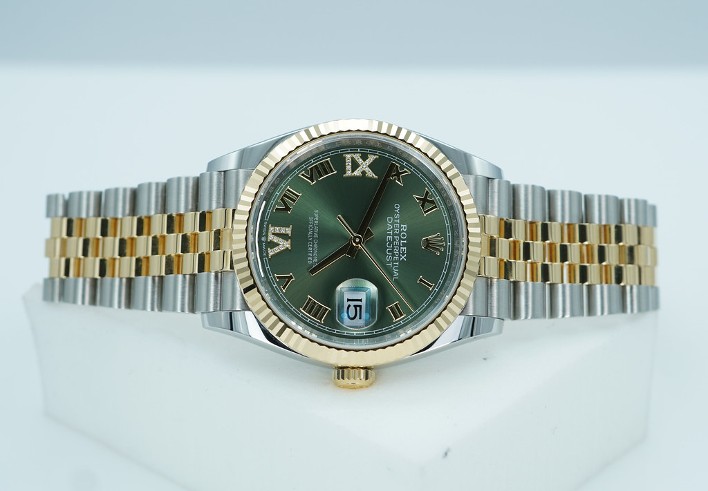 An Excellent Condition & Very Beautiful 2025 36mm Rolex 126233 Datejust 36 18K Yellow Gold & Stainless Steel, Fluted Bezel with Olive Green Diamond Dial. Its on Jubilee Bracelet. Rolex 3235 Movement. Purchased from Rolex Authorized Dealer in 12.2025. Watch running perfect with Non Issues. Full Links. Full Set & Under 5 Years Factory Warranty.