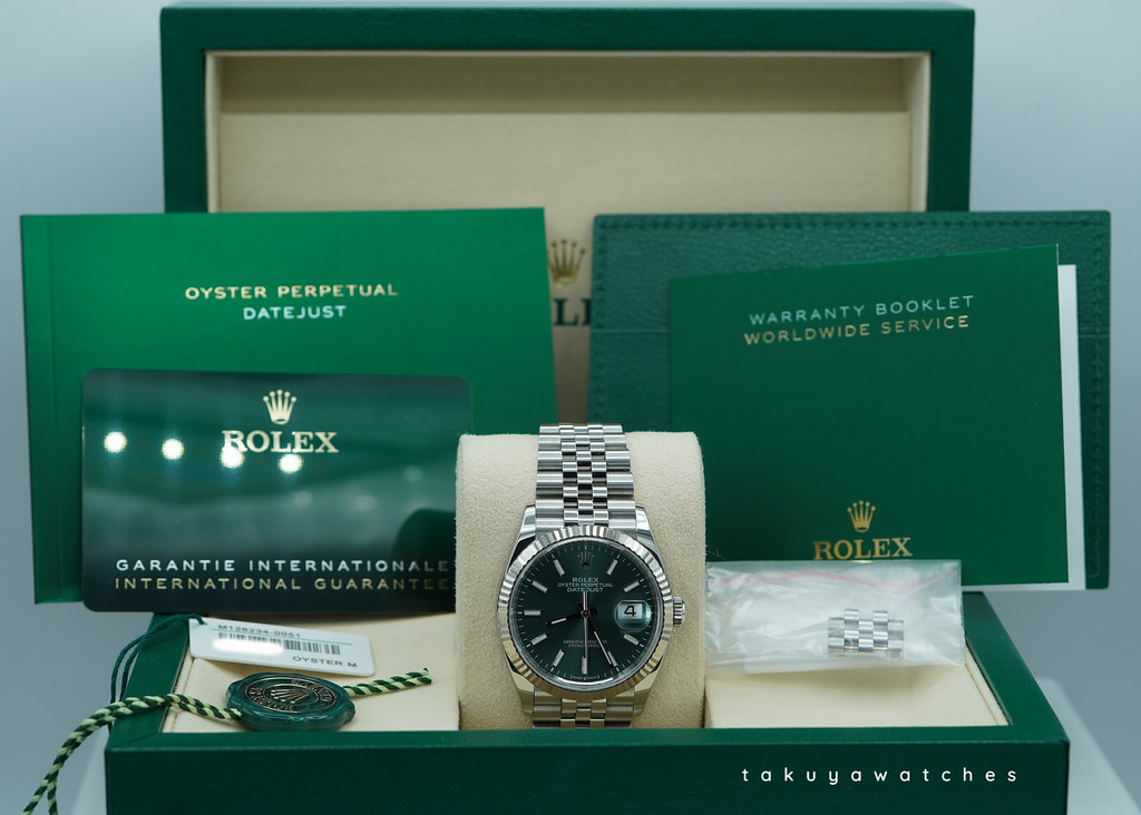 Complete Packages/Set (double boxes, Rolex Green Tag, White Serial Numbers Tag), & Complete Manuals/Papers with New Style Warranty Card Dated 05.2025. The Watch still has Plenty of Factory Warranty left.