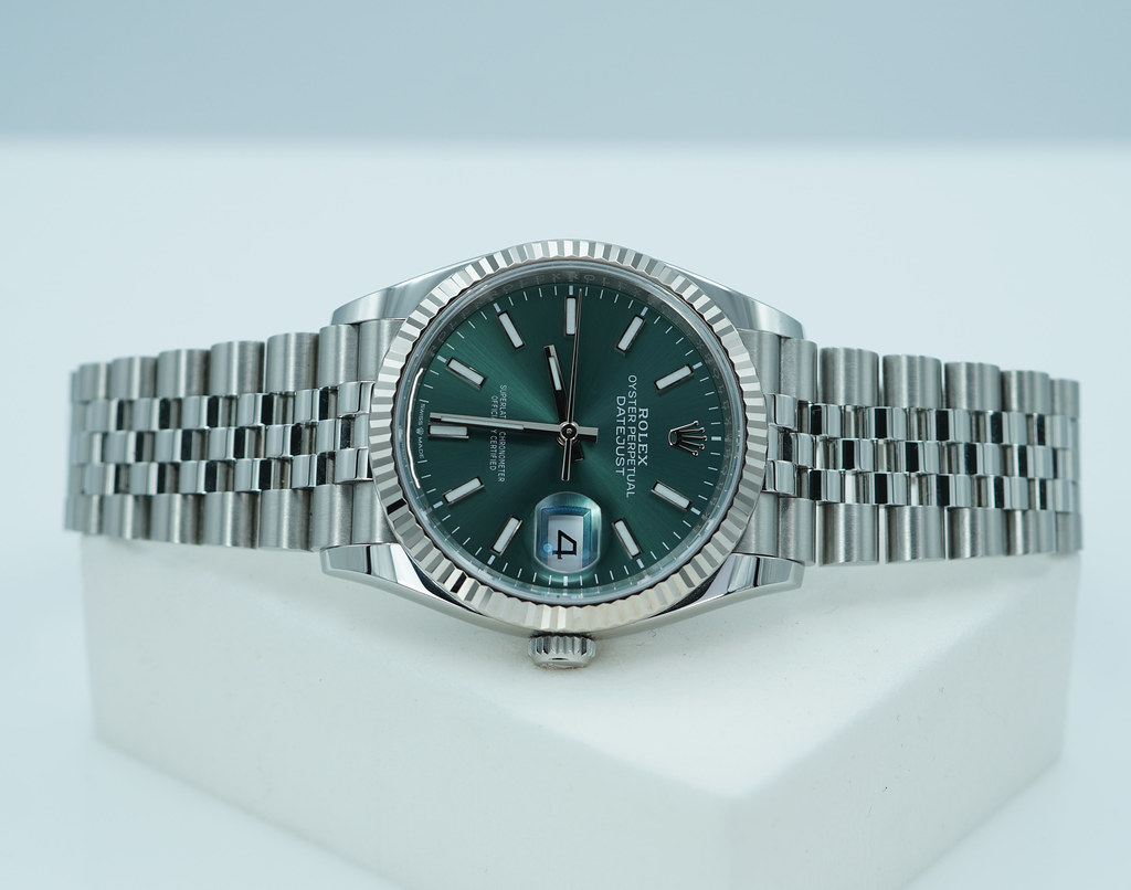An Excellent Condition & Very Beautiful 2025 36mm Rolex 126234 Datejust Stainless Steel with 18K White Gold Fluted Bezel & Mint Green Dial. It’s on Jubilee Bracelet. New Rolex 3235 Movement. Purchased from Rolex USA Authorized Dealer in 05.2025. Watch Running Perfect with Non Issues. Full Links. Full Set & Under 5 Years Factory Warranty.