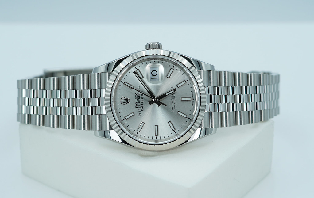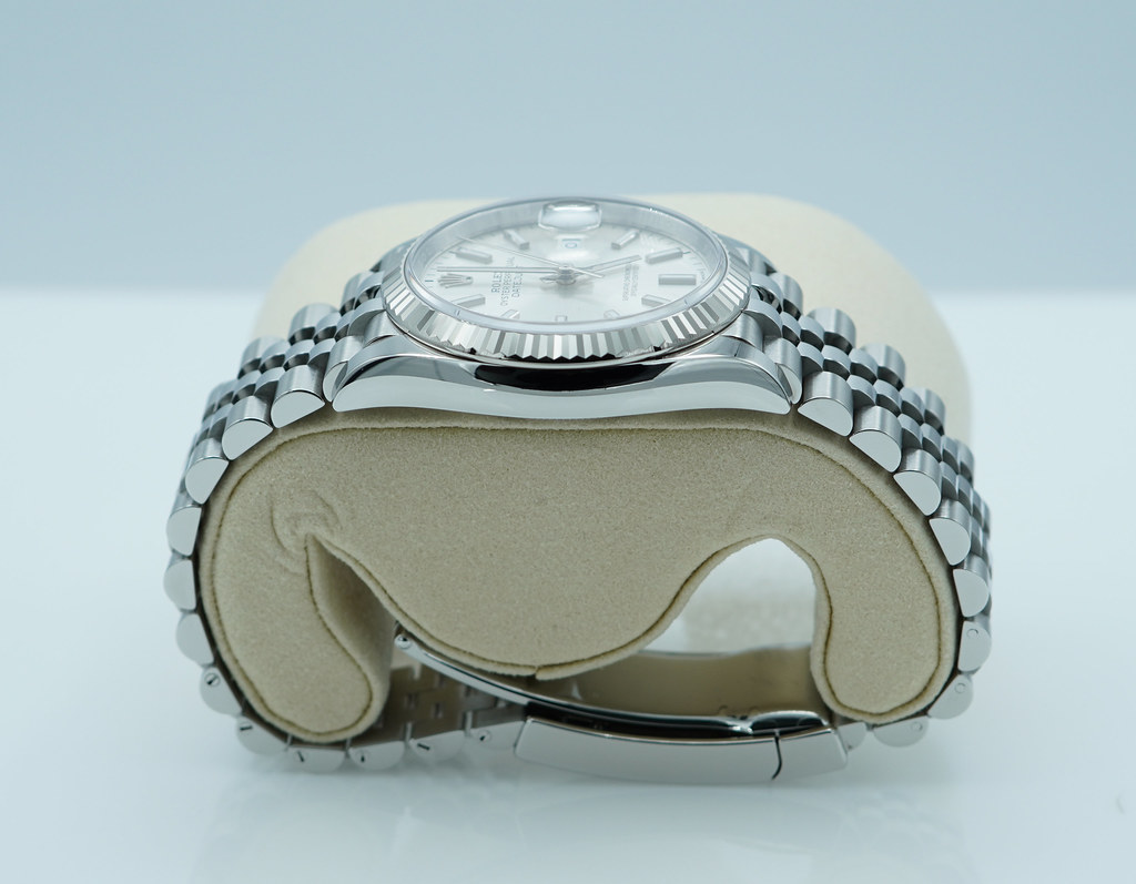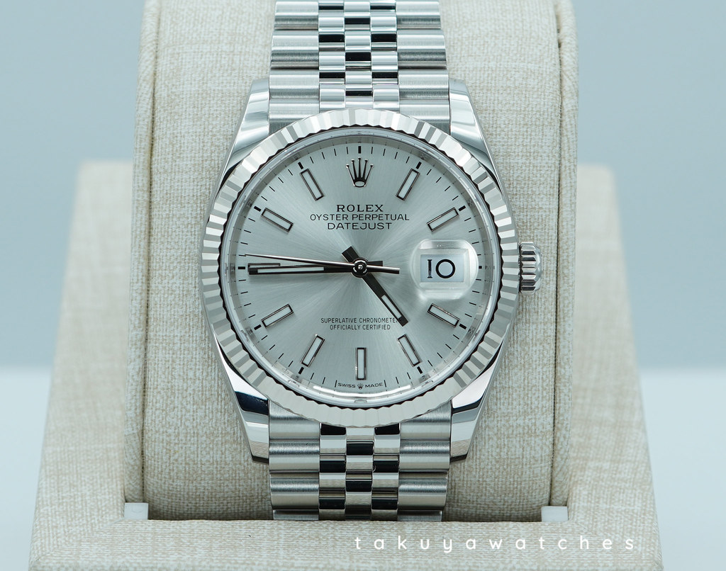 An Excellent Condition & Very Beautiful 2025 36mm Rolex 126234 Datejust Stainless Steel with 18K White Gold Fluted Bezel & Silver Index Dial. It’s on Jubilee Bracelet. New Rolex 3235 Movement. Just Purchased from Rolex Authorized Dealer in 11.2025.