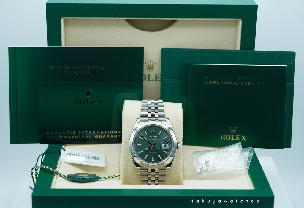 Complete Packages/Set (double boxes, Rolex Green Tag, White Serial Numbers Tag), & Complete Manuals/Papers with New Style Warranty Card Dated 08.2022. The Watch still has Plenty of Factory Warranty left.